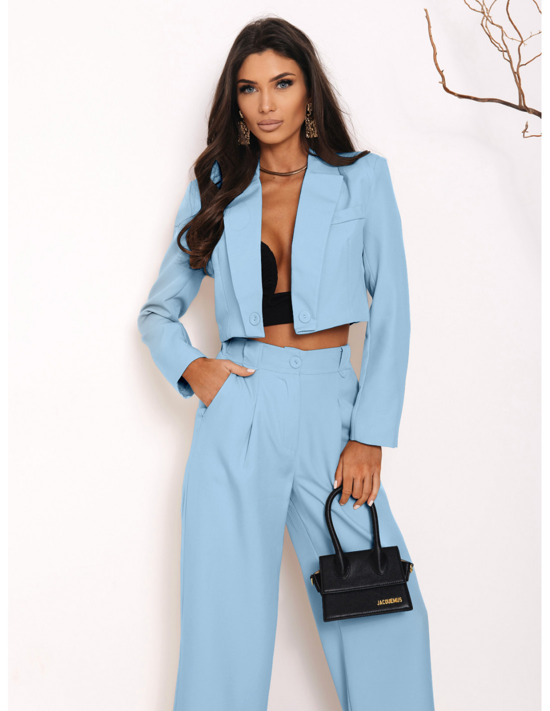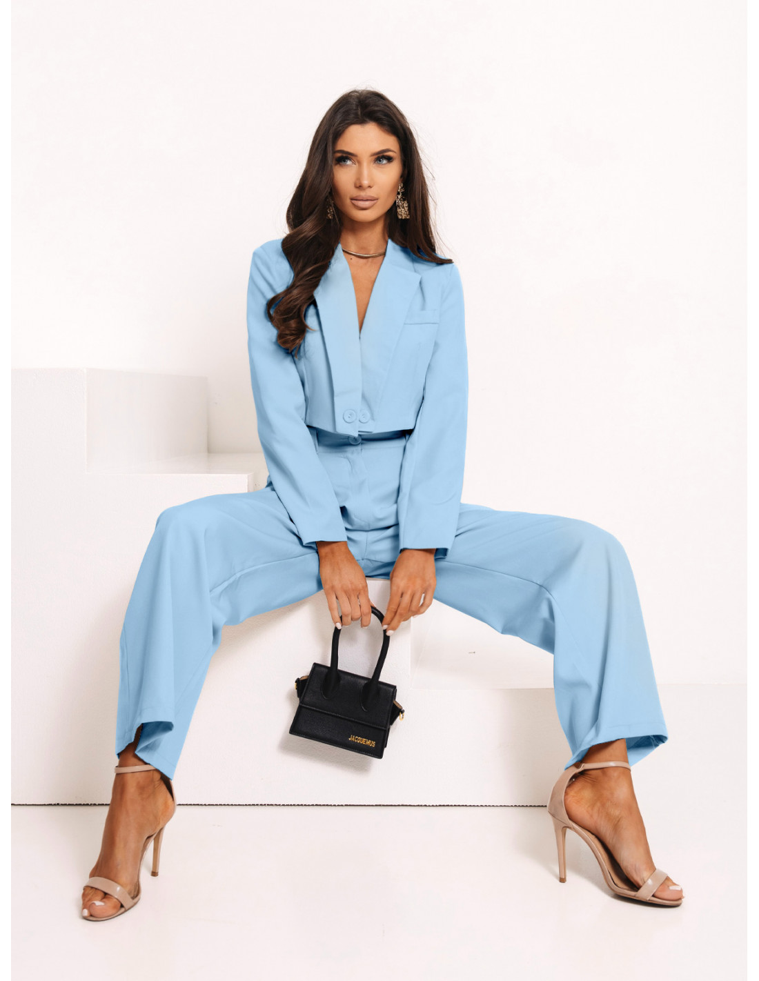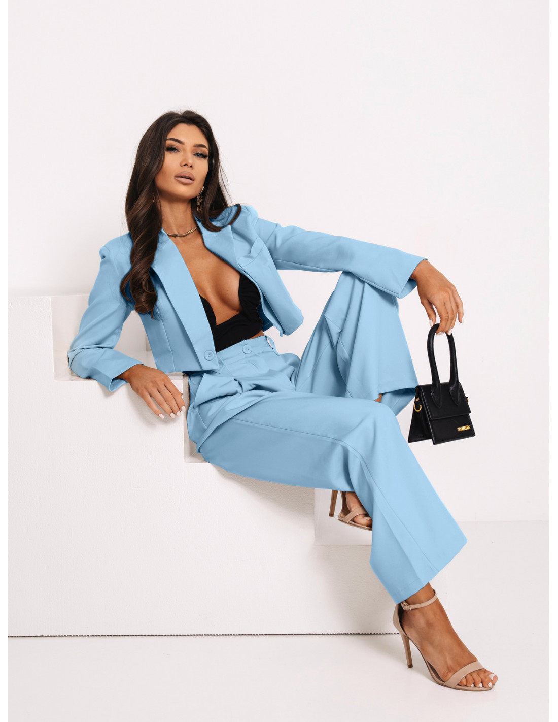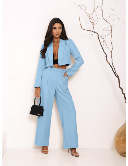 Garnitur krótki żakiet i szerokie spodnie MAE - błękitny