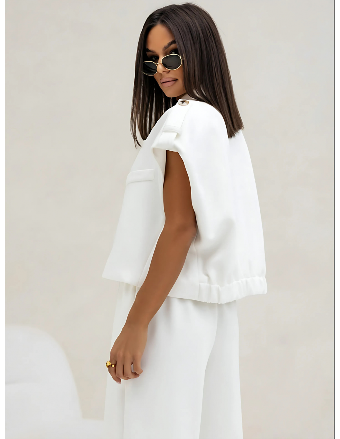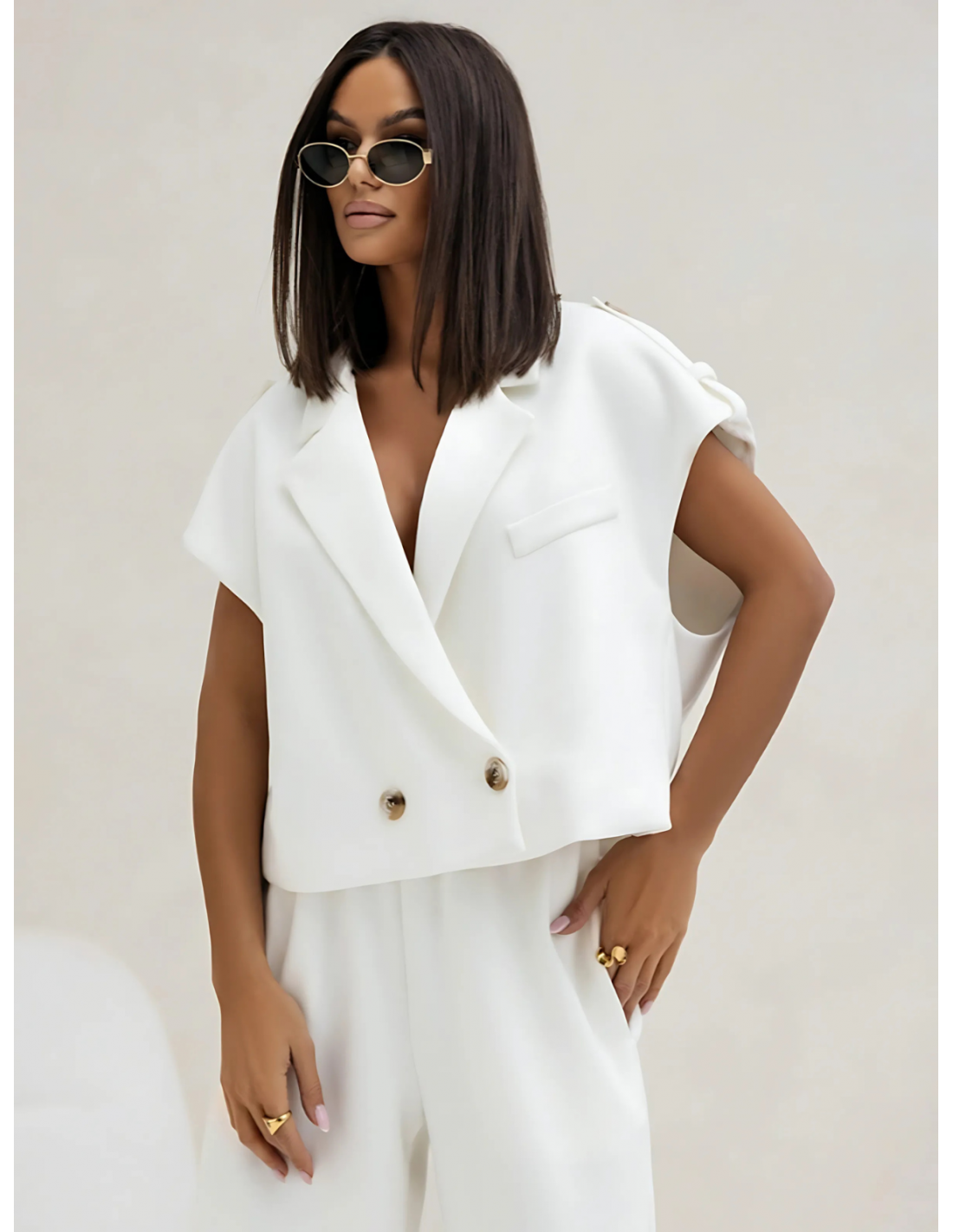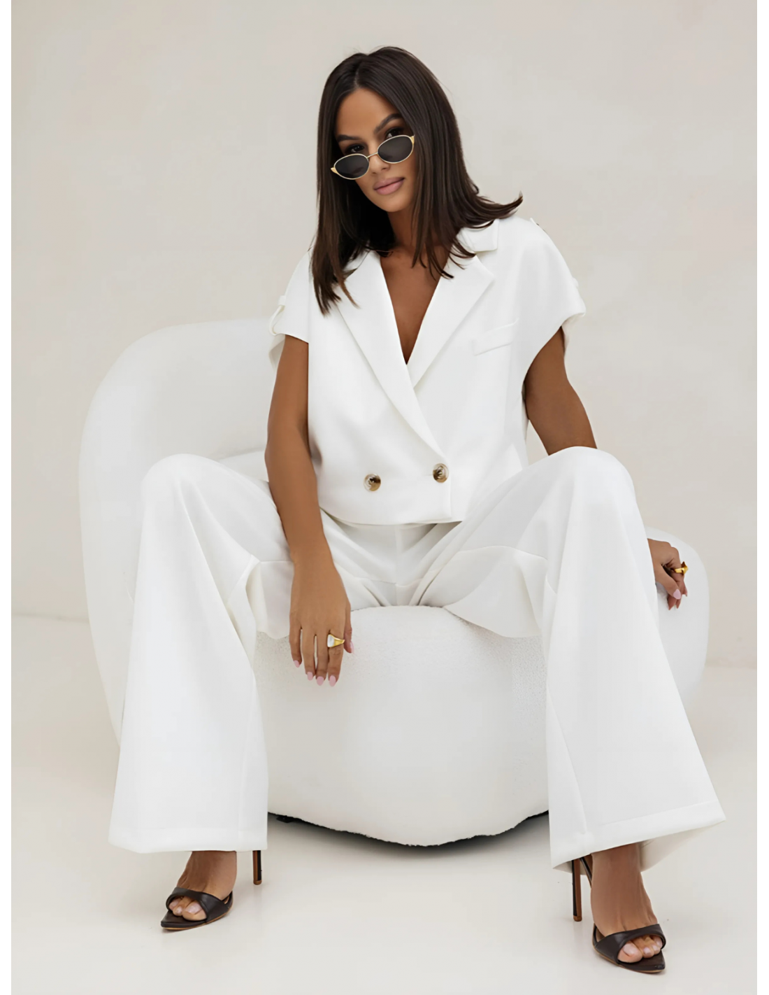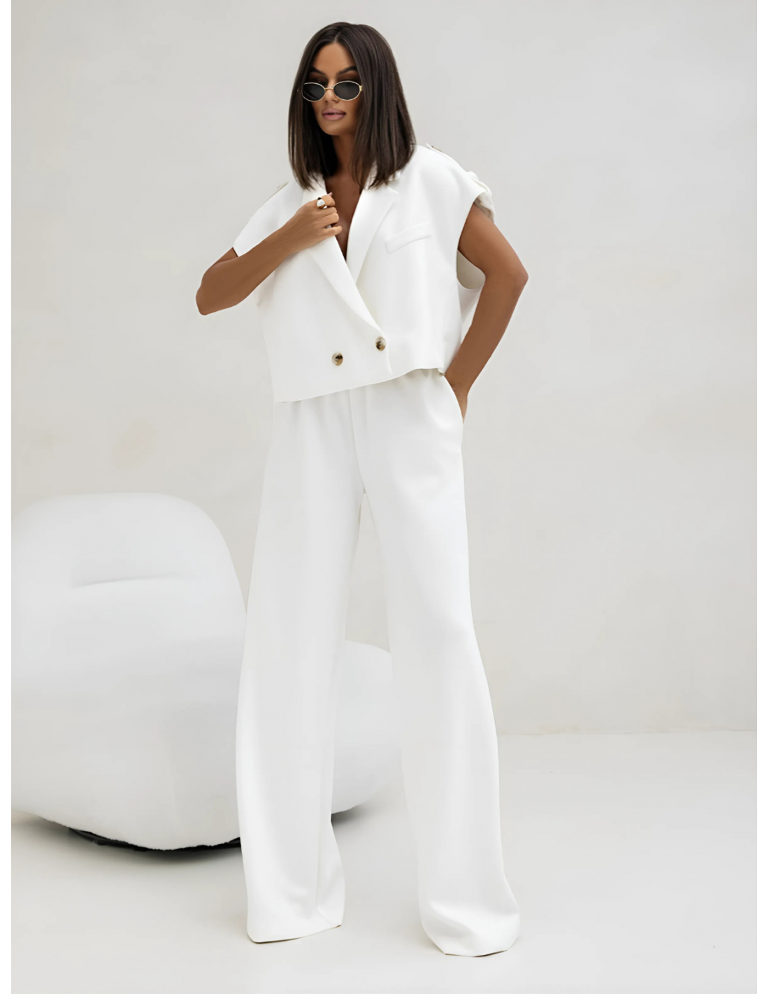 Stylowy komplet kamizelka i szerokie spodnie GAJA - biały