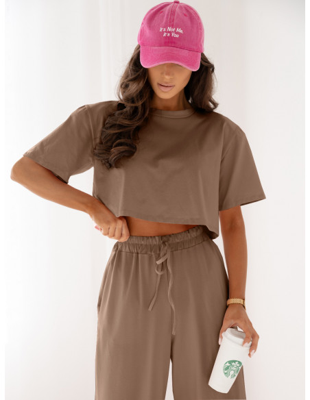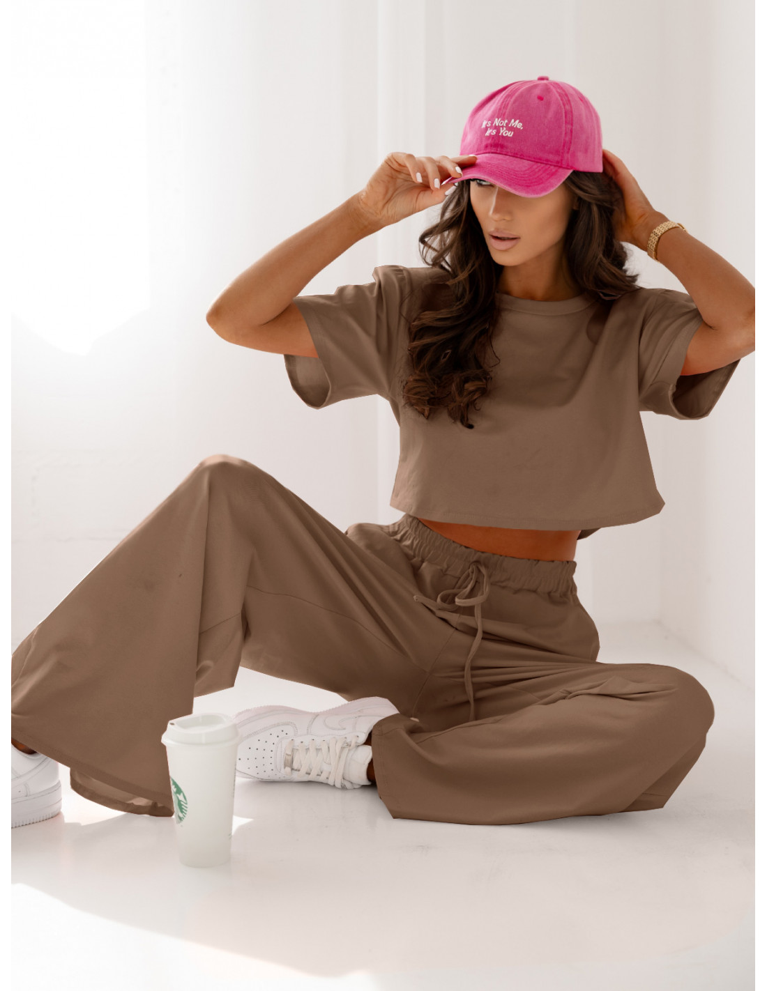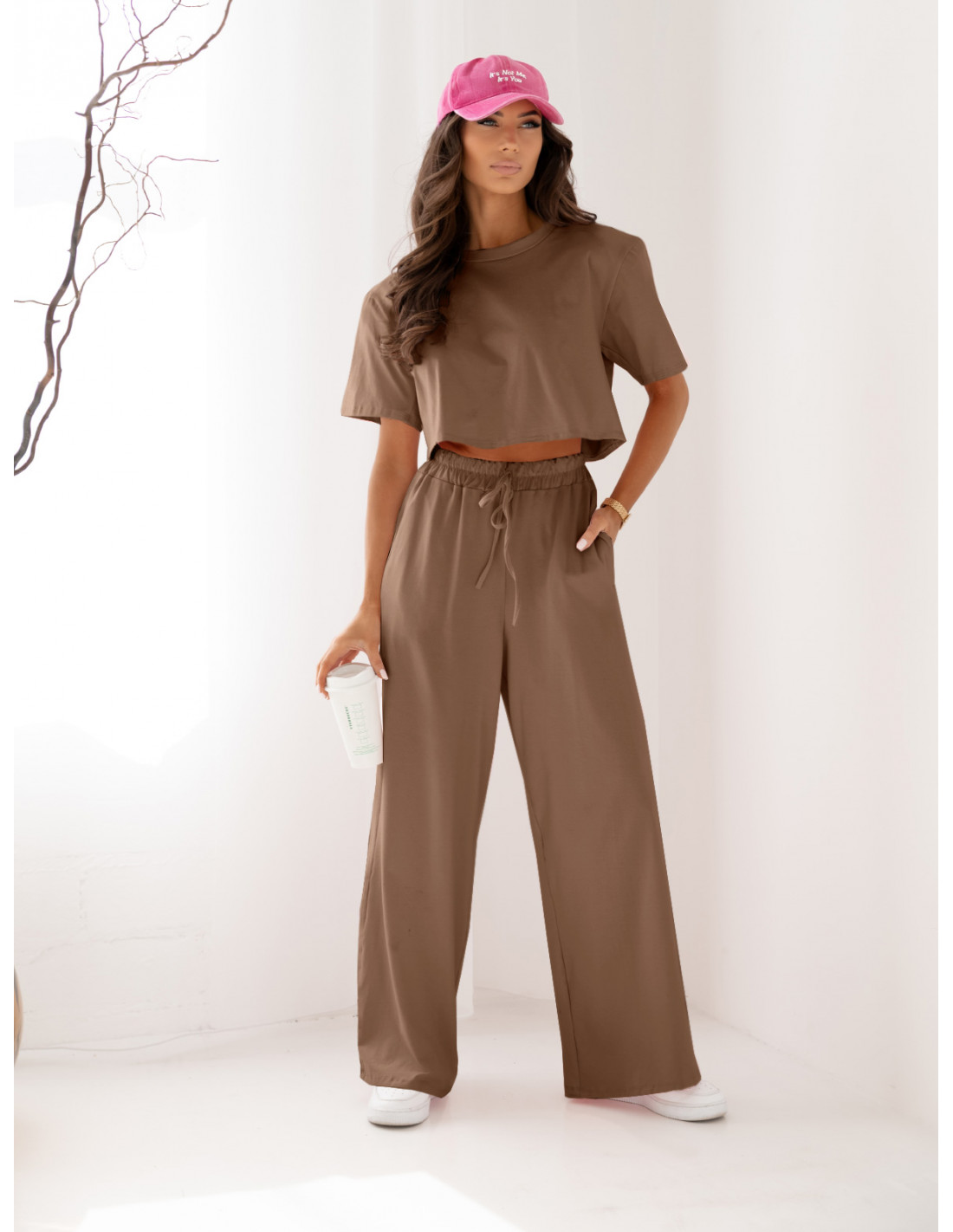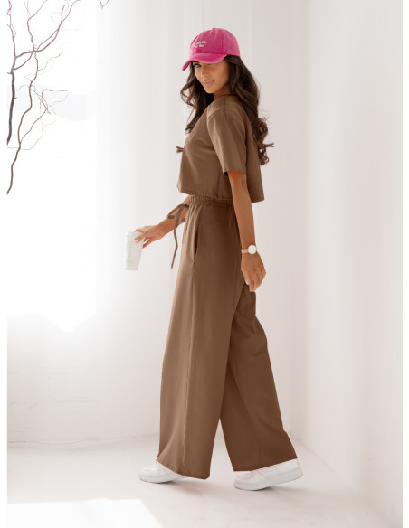 Bawełniany komplet z szerokimi spodniami NICOL - cappuccino
