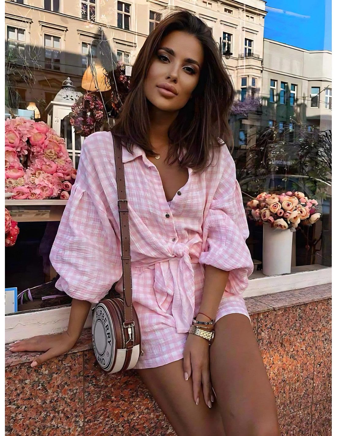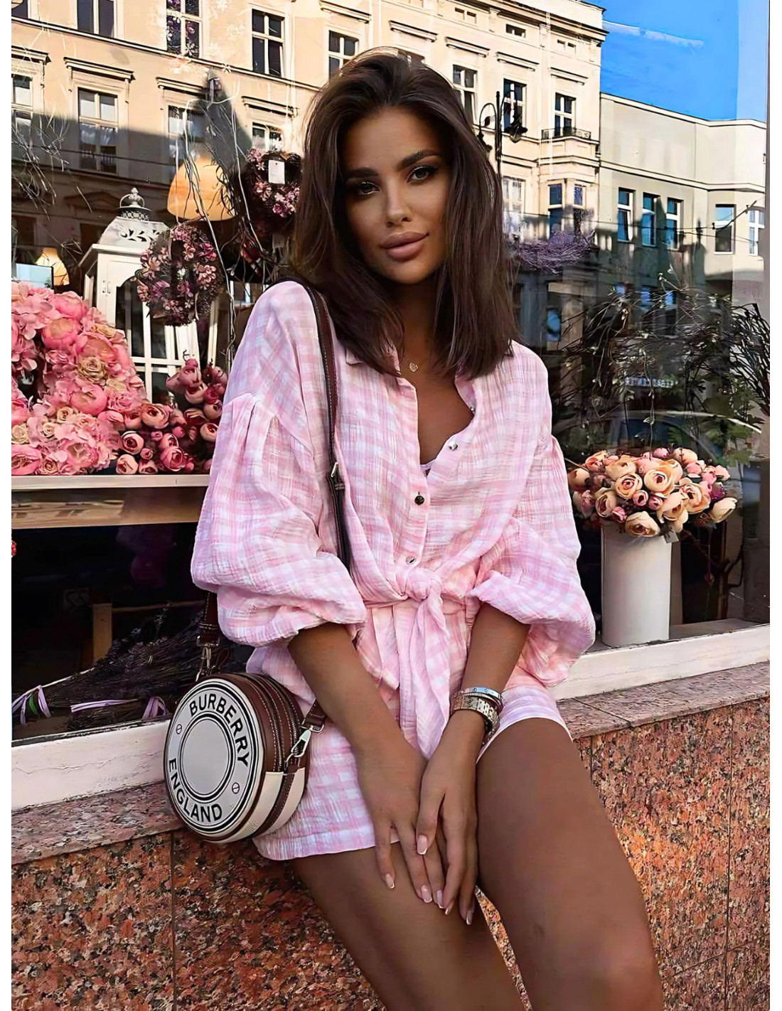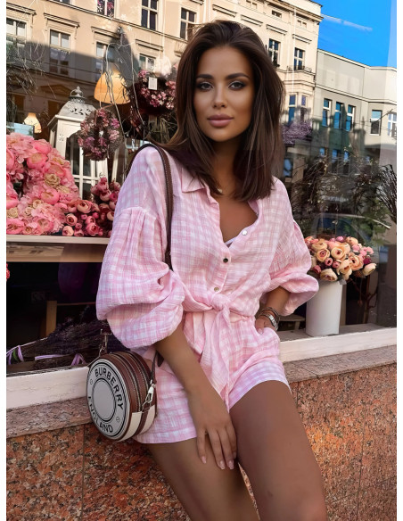 Muślinowy komplet koszula i spodenki CYRIA - pudrowy róż