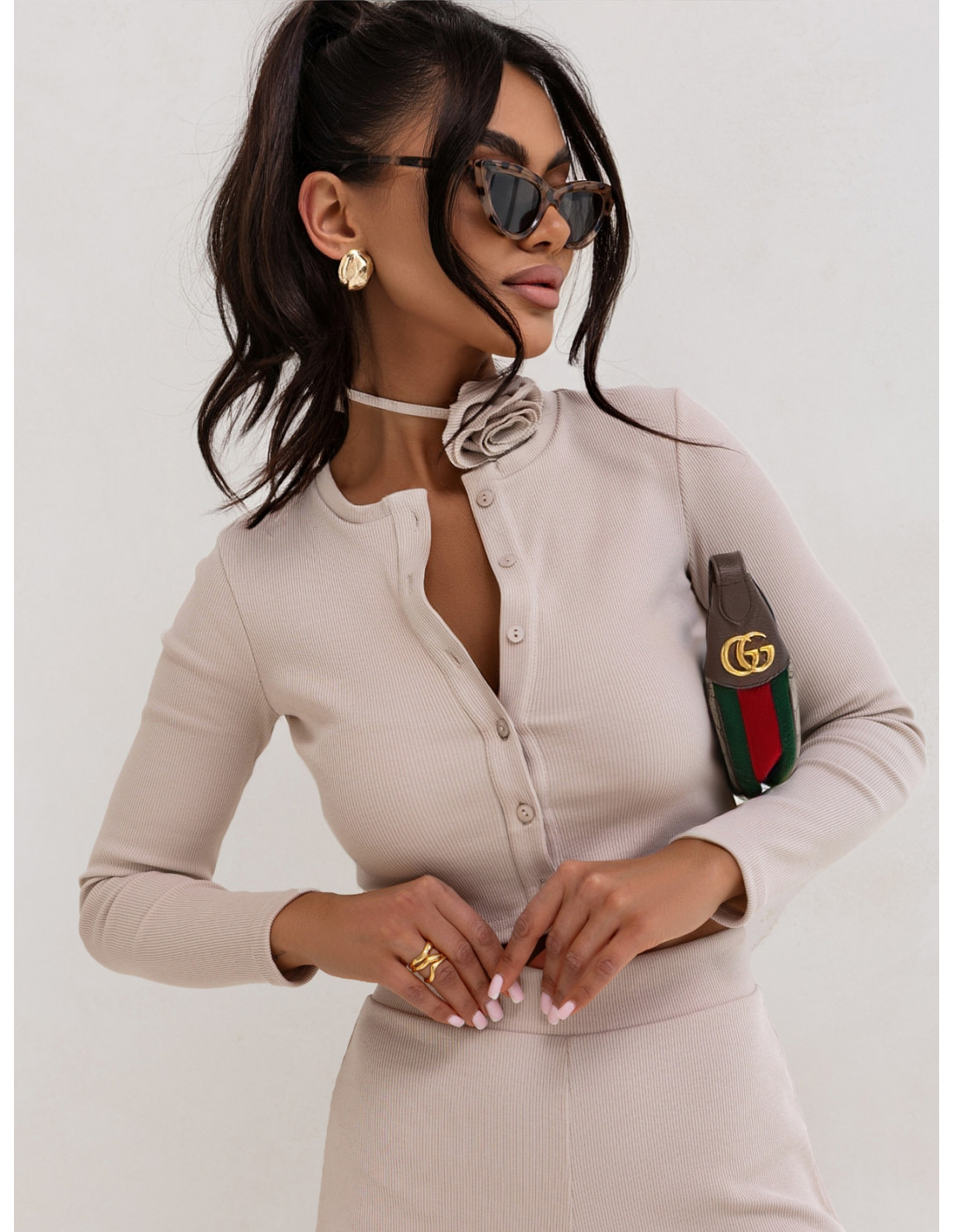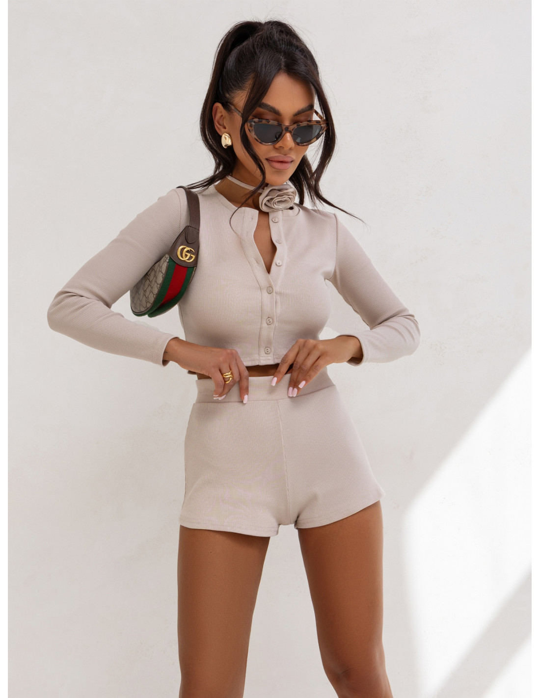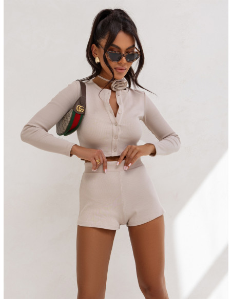 Bawełniany komplet bluzka i spodenki COLTON - beżowy
