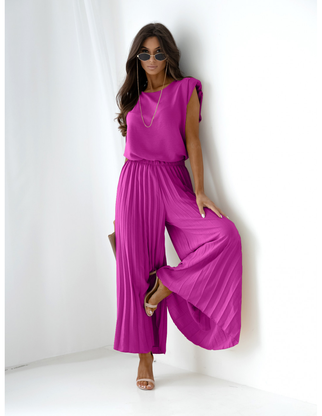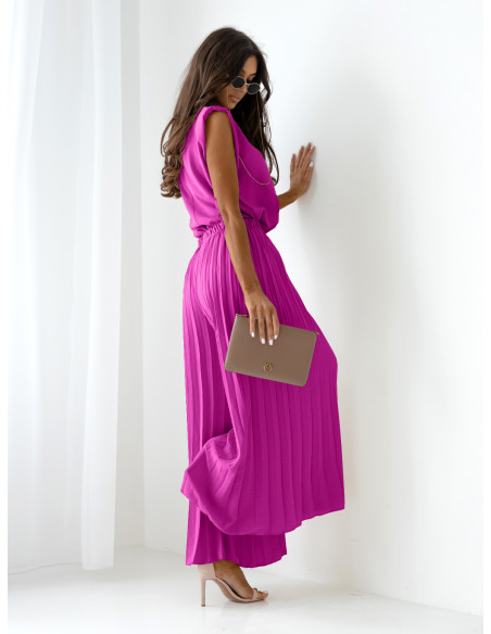 Wiskozowy komplet z plisowanymi spodniami JASMIRA - fioletowy