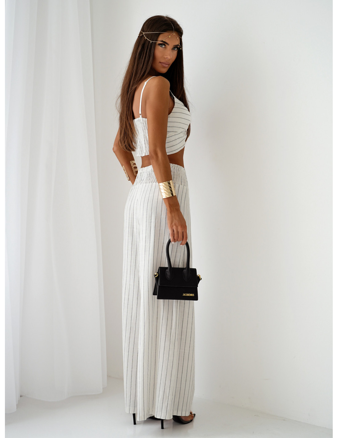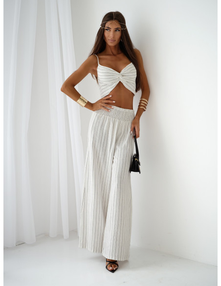 Lniany komplet crop top i szerokie spodnie SETI - biały