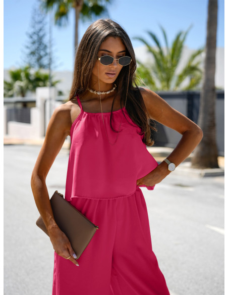 Modny komplet top i szerokie spodnie LEONI - fuksjowy