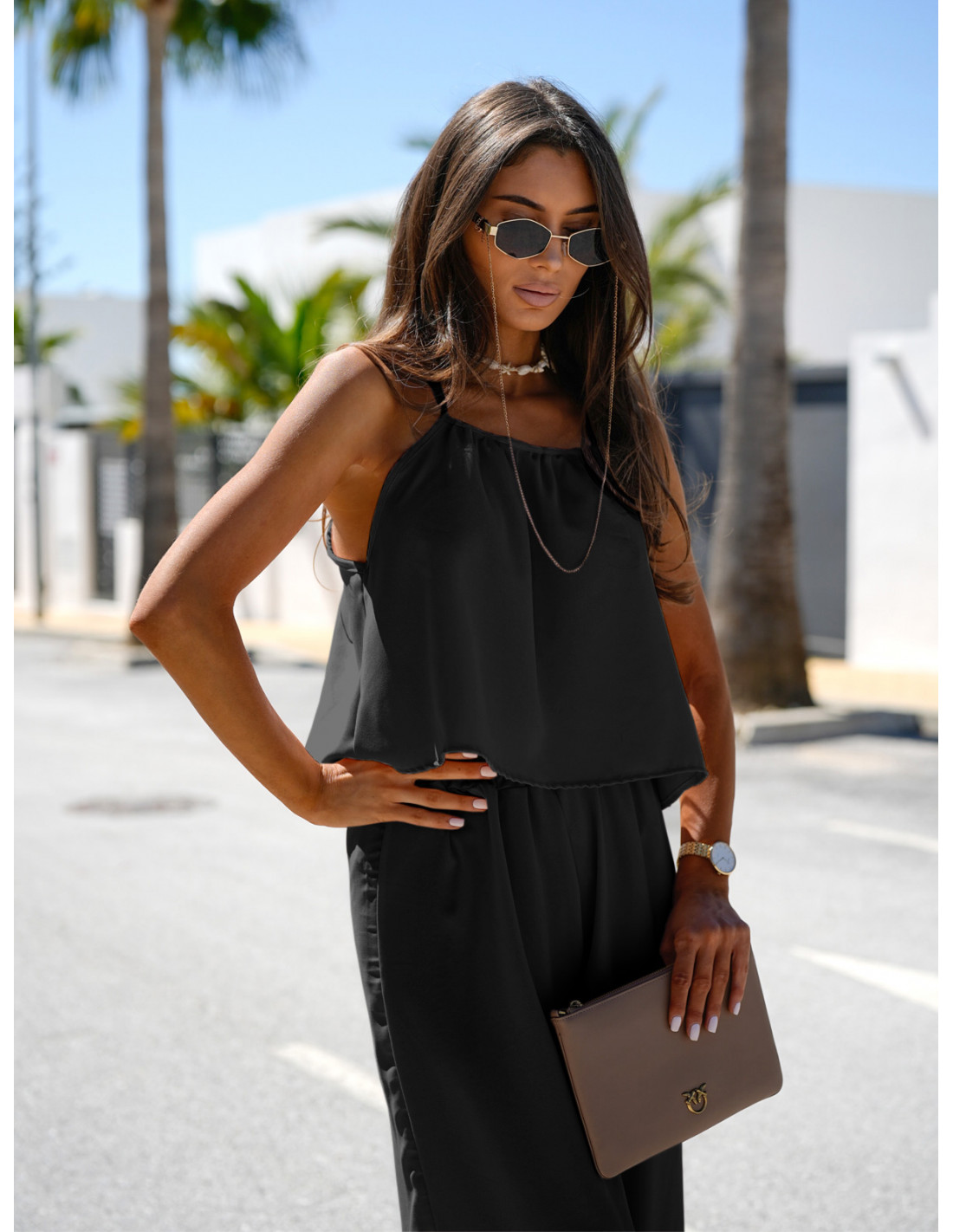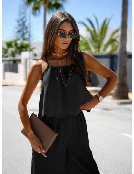 Modny komplet top i szerokie spodnie LEONI - czarny