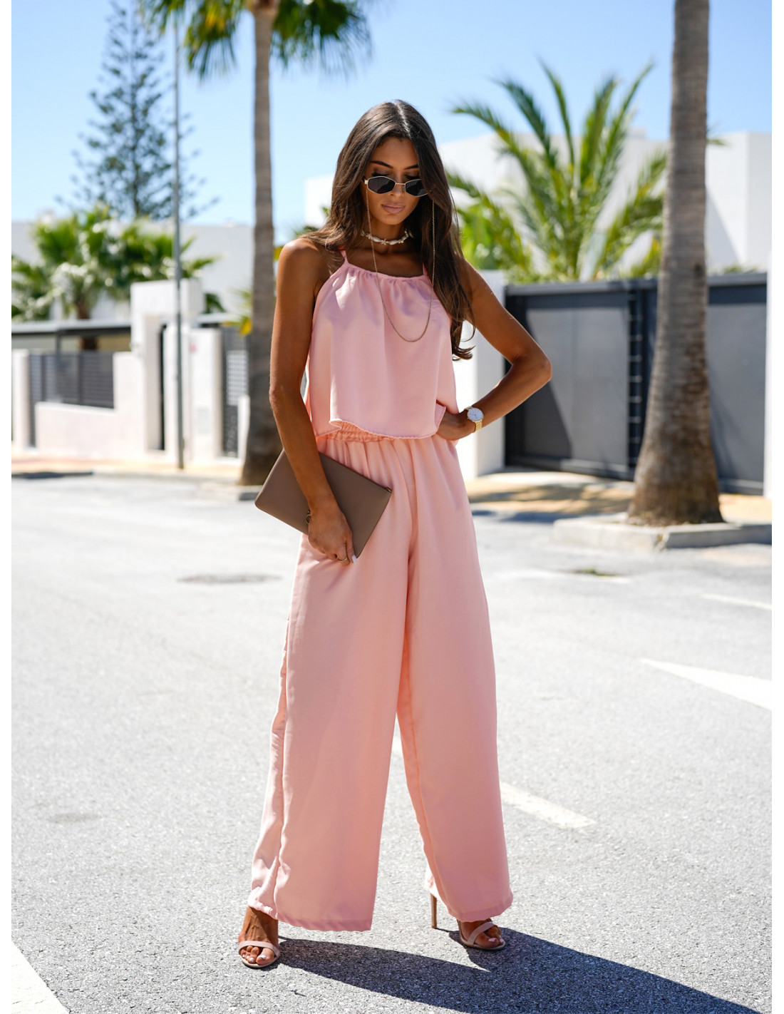 Modny komplet top i szerokie spodnie LEONI - pudrowy róż
