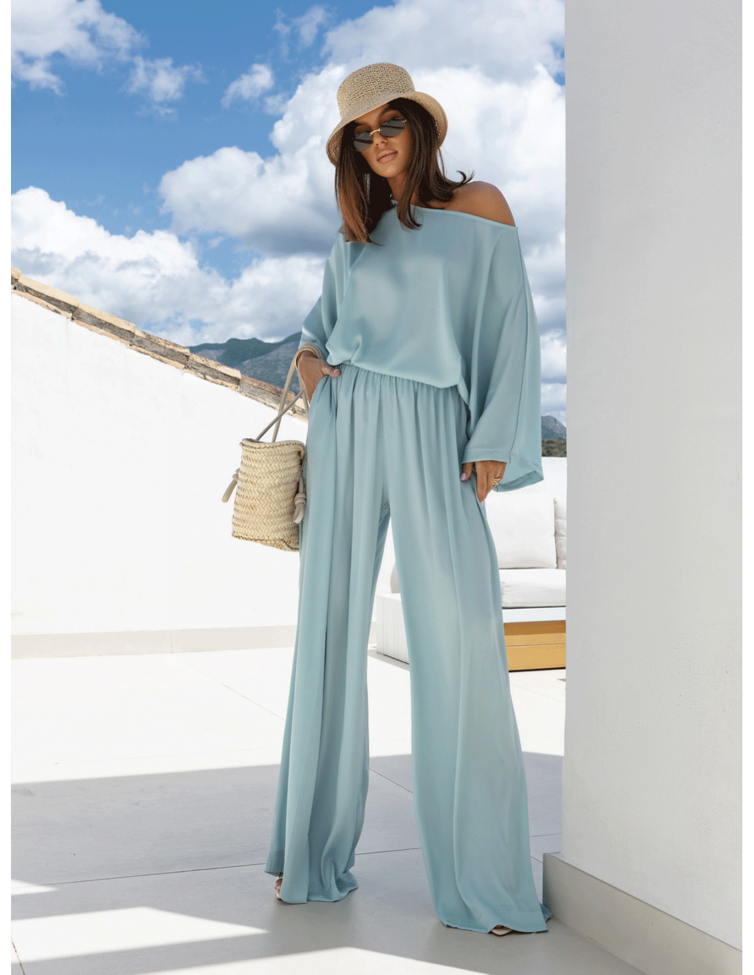 Stylowy komplet z szerokimi spodniami ESMARIA - szałwiowy