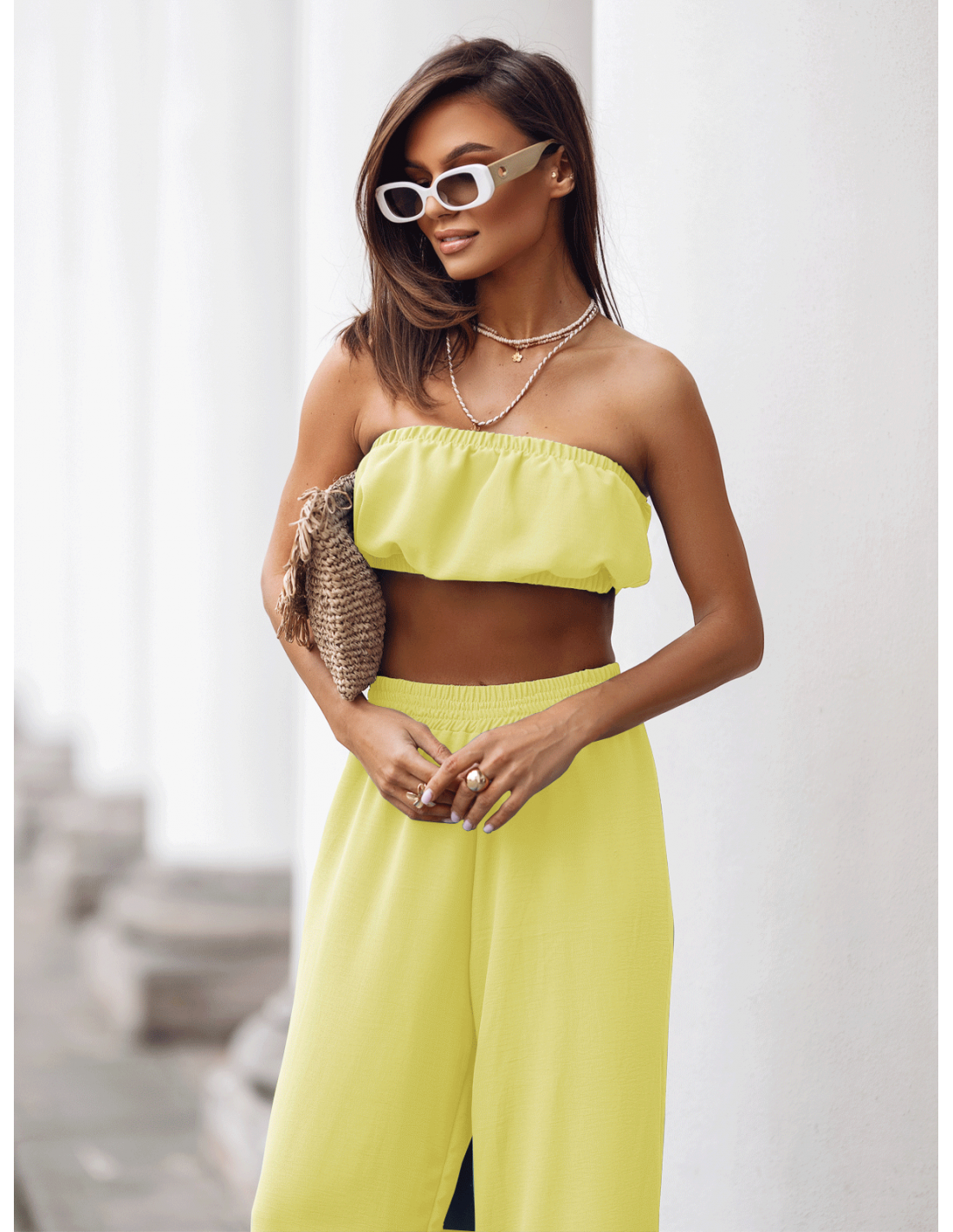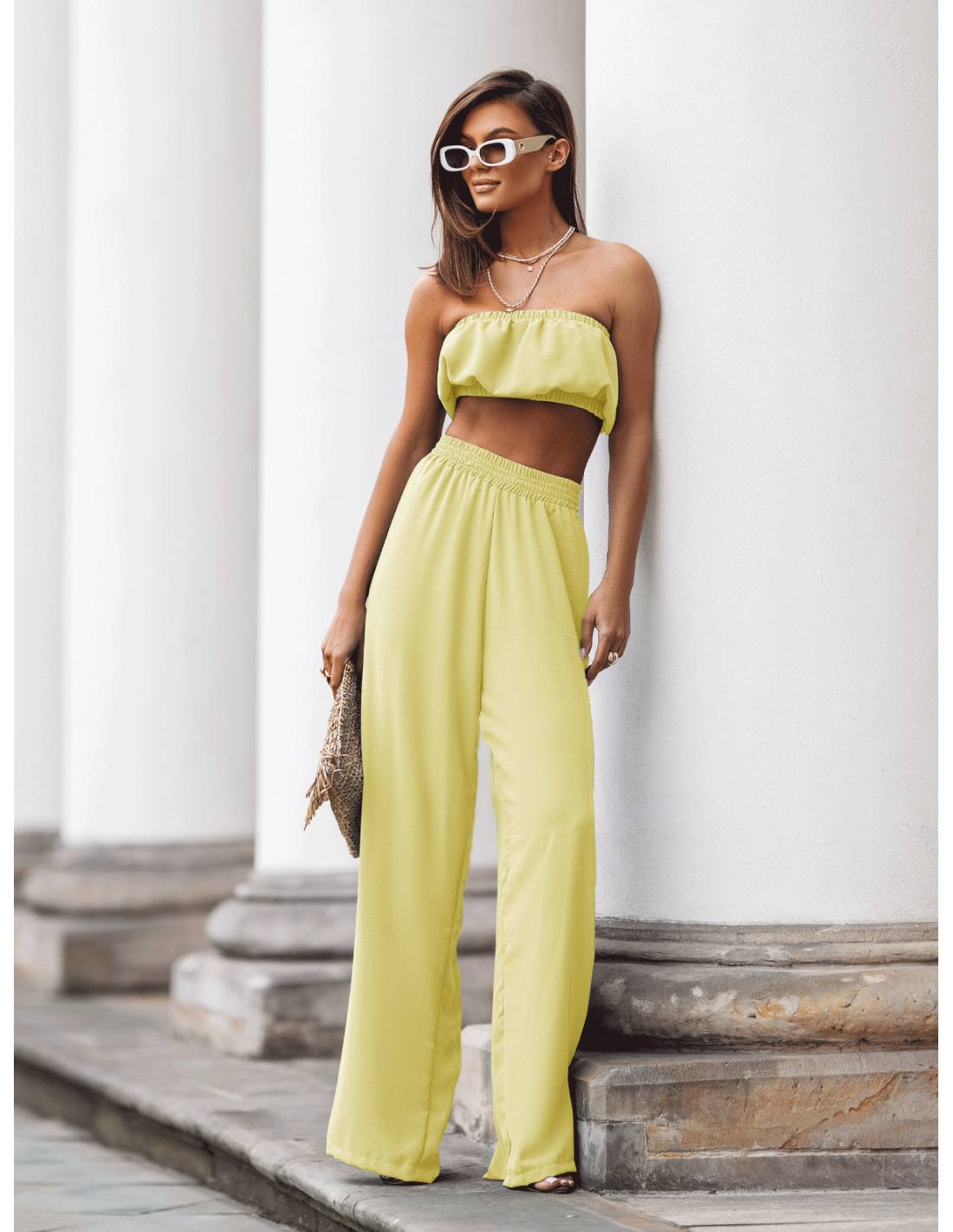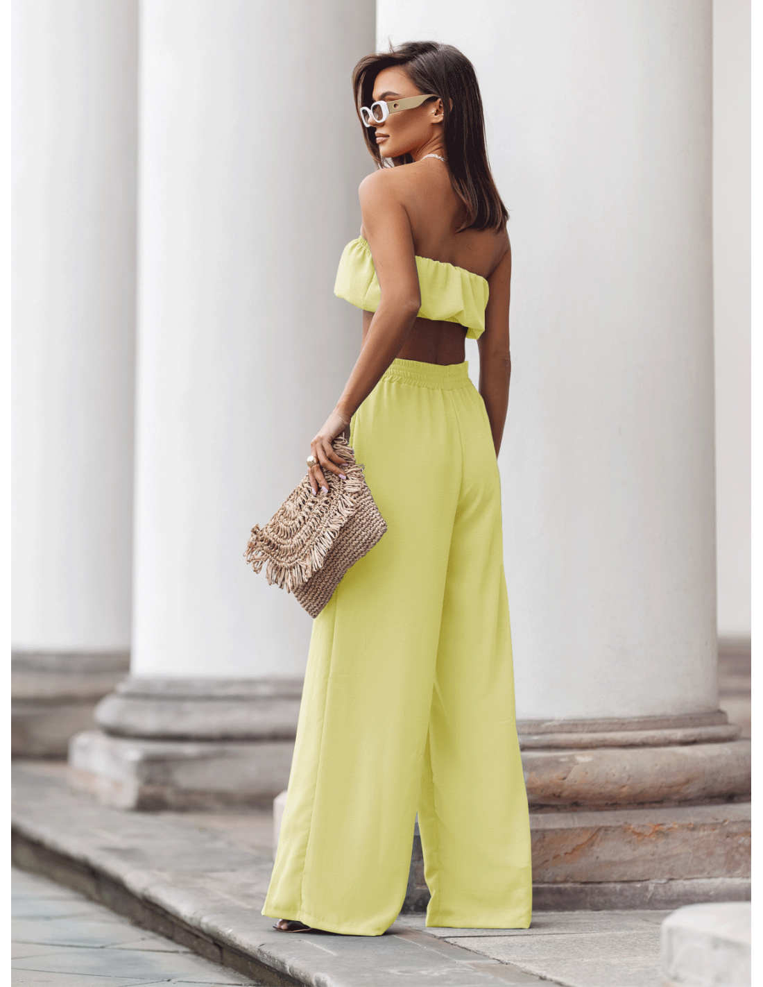 Stylowy komplet top z szerokimi spodniami MATILDE - bananowy