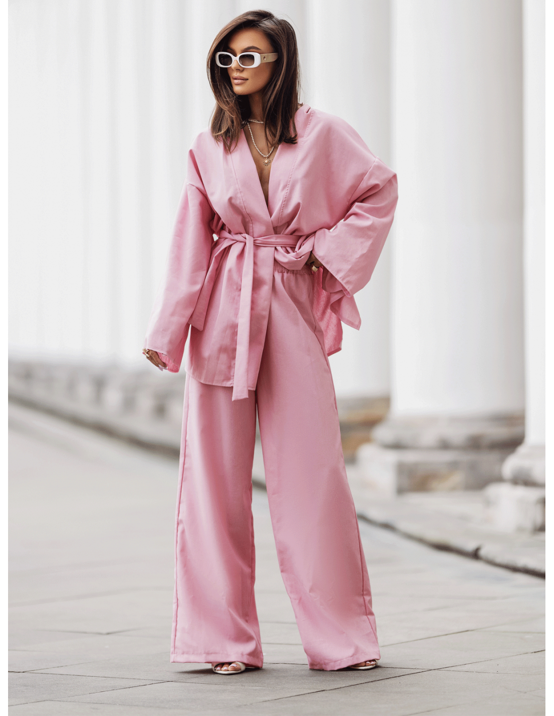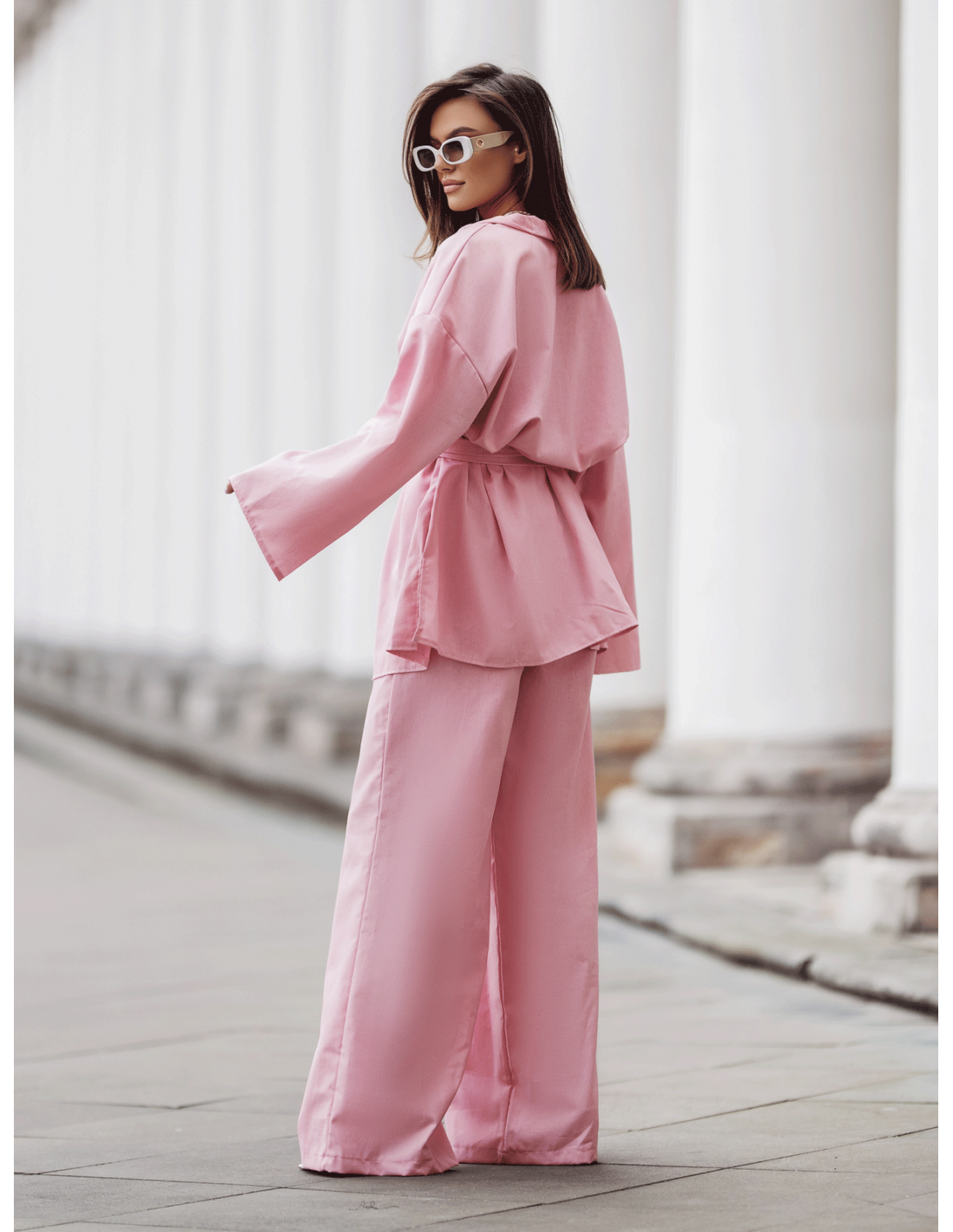 Stylowy lniany komplet z szerokimi spodniami NIKOL - brudny róż