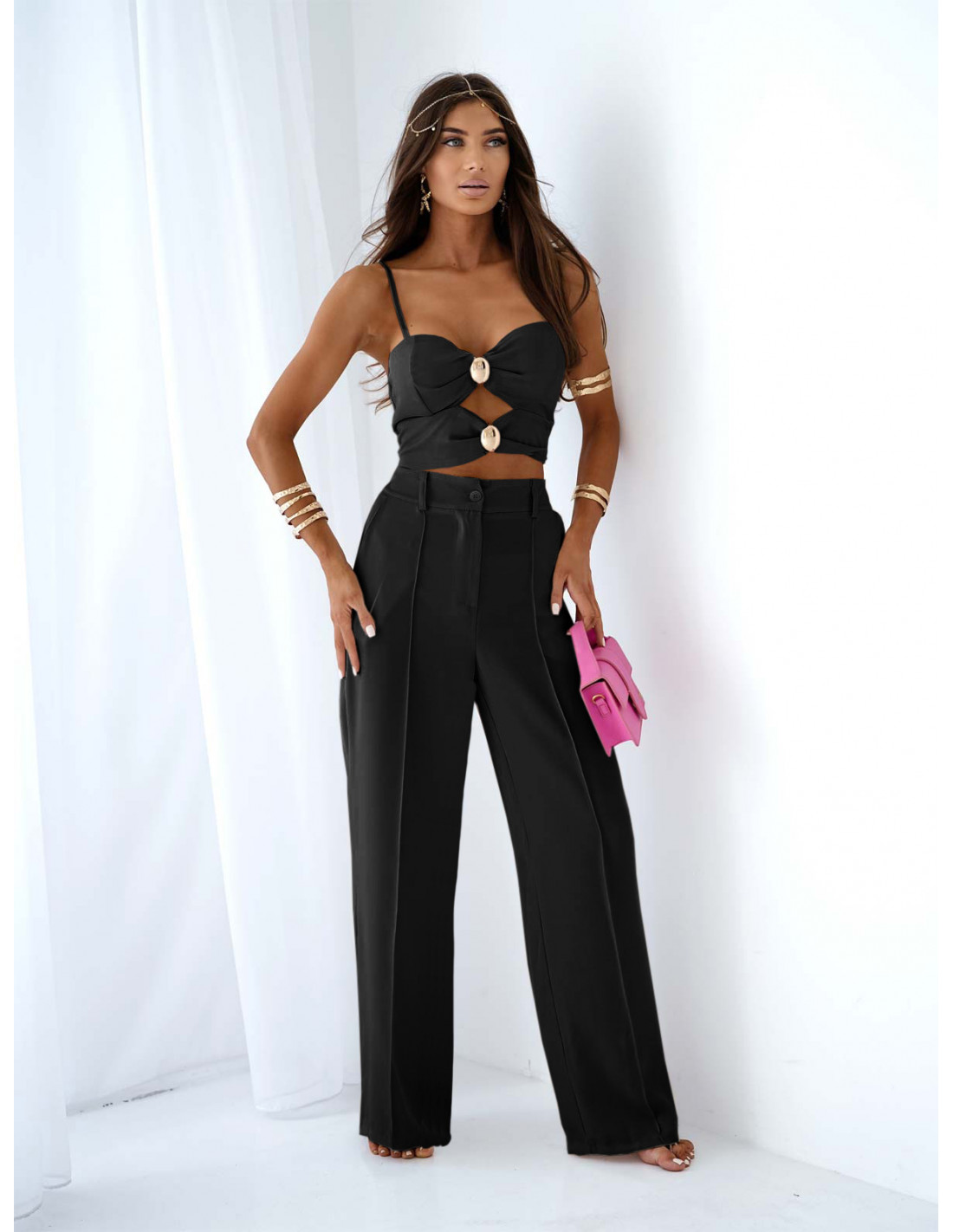 Stylowy komplet top i spodnie na kant LUMIRA - czarny