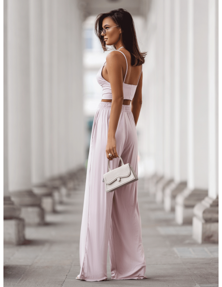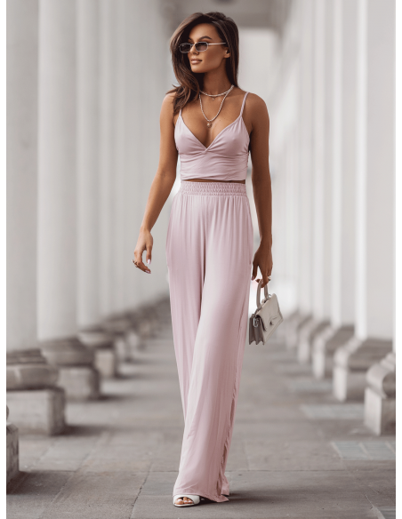 Wiskozowy komplet z szerokimi spodniami ASTORIA - brudny róż
