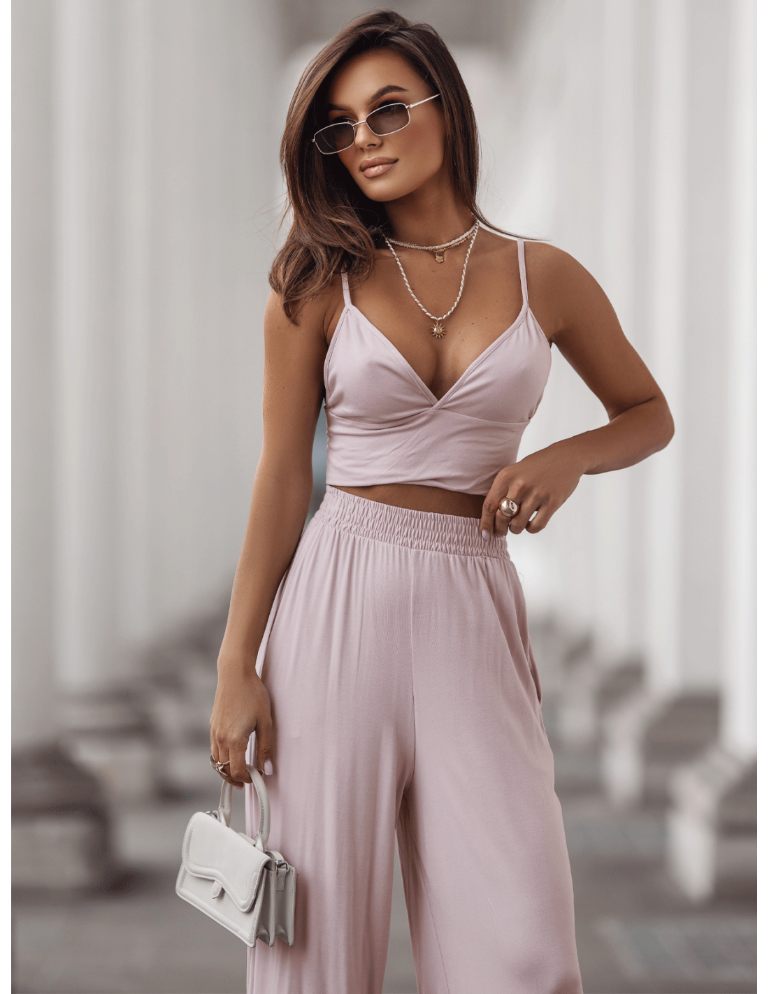 Komplet ASTORIA to gotowa stylizacja — wystarczy dodać delikatne sandałki, torebkę typu baguette i biżuterię, by stworzyć efektowny look na miasto, kawę z przyjaciółką czy letnią randkę.