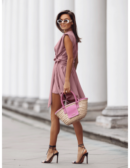 Komplet crop top z luźnymi spodenkami MAISIE - brudny róż