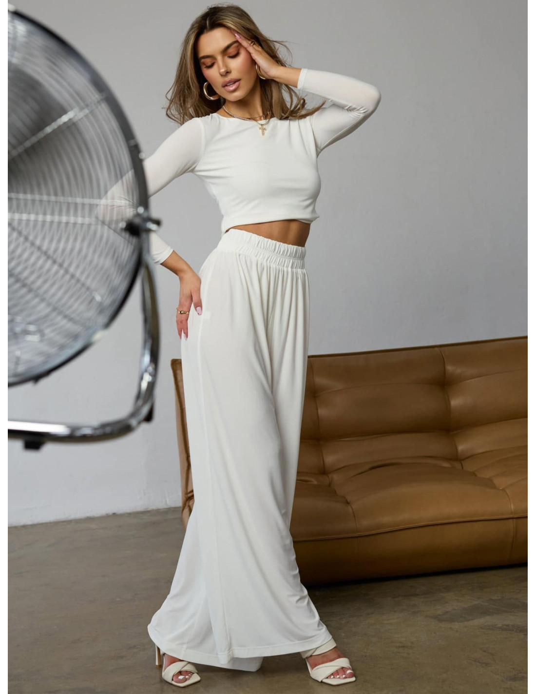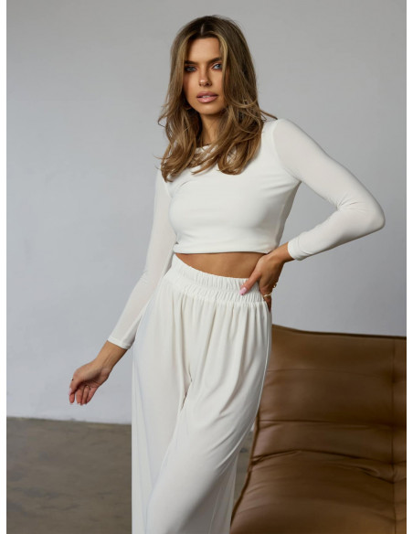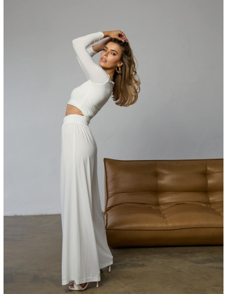 Stylowy komplet z szerokimi spodniami ARTINA - biały