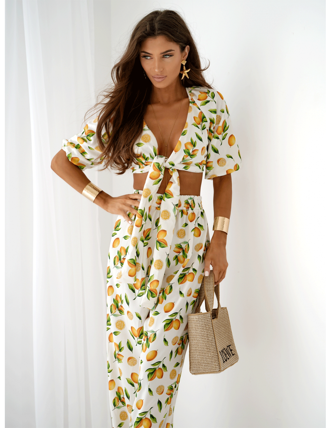 Wprowadź do swojej garderoby odrobinę śródziemnomorskiego słońca dzięki temu wyjątkowemu kompletowi z cytrusowym printem!
