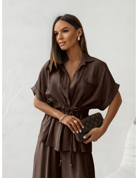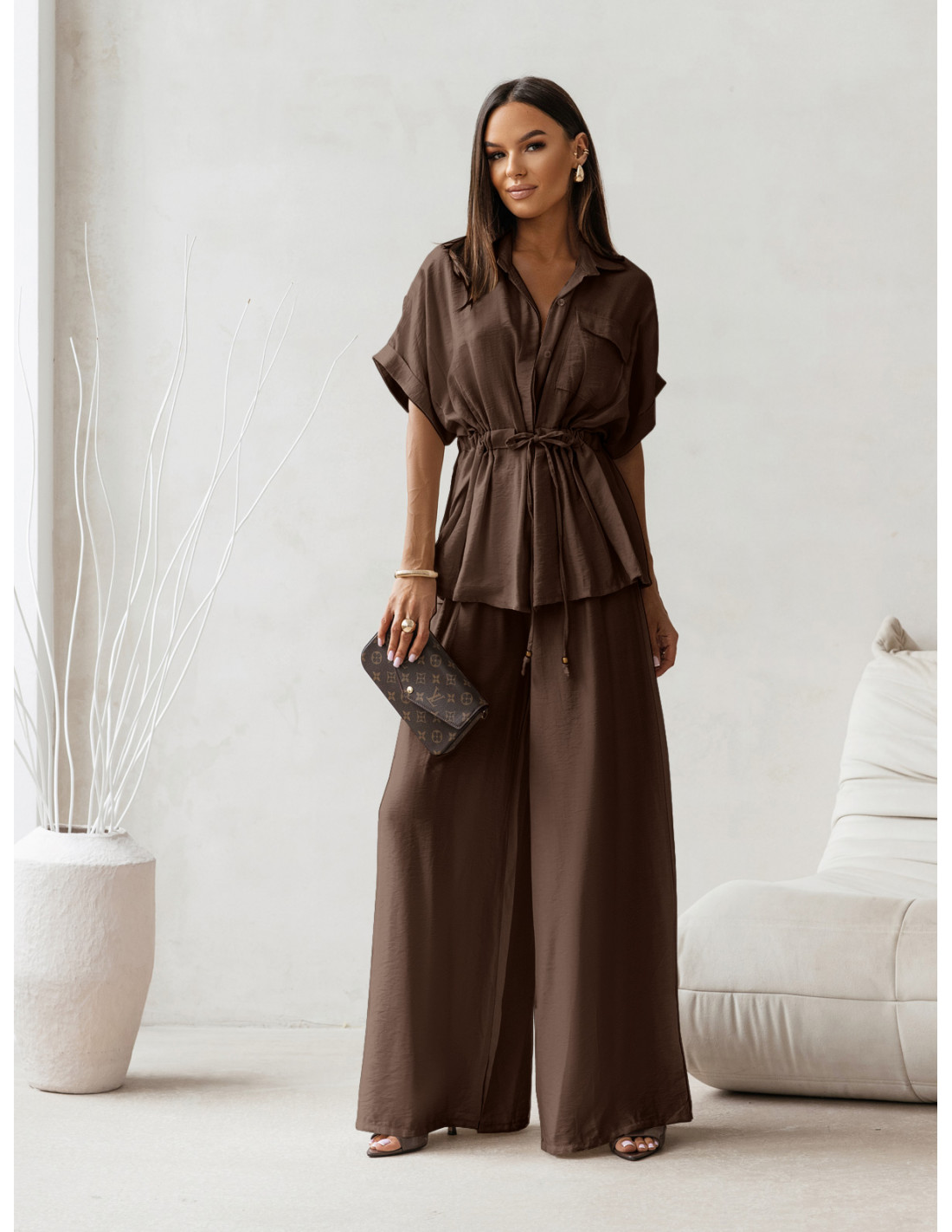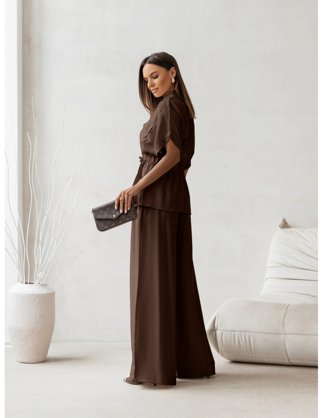 Wiskozowy komplet z szerokimi spodniami VELENA - czekoladowy