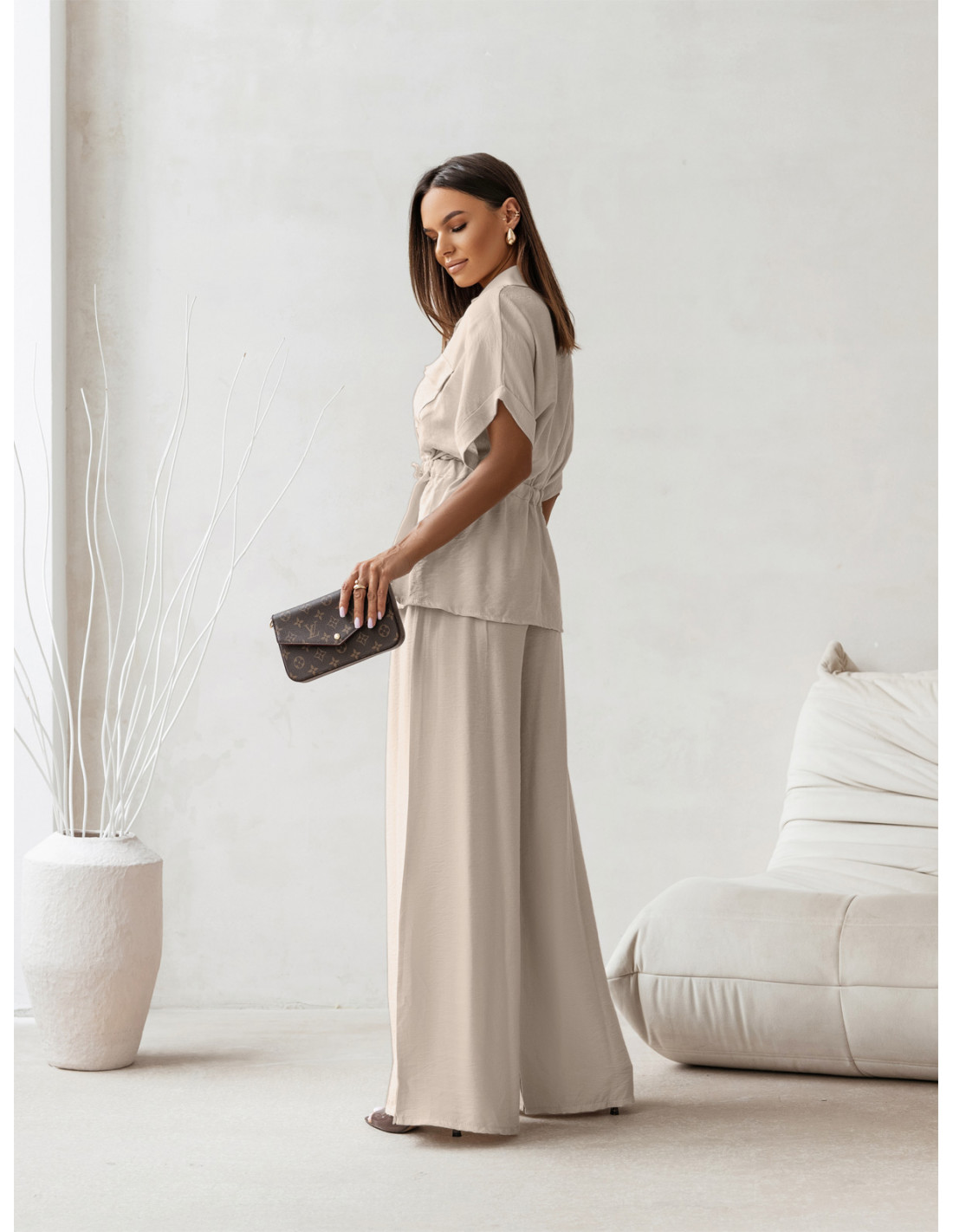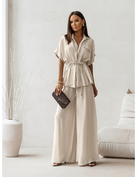 Wiskozowy komplet z szerokimi spodniami VELENA - beżowy