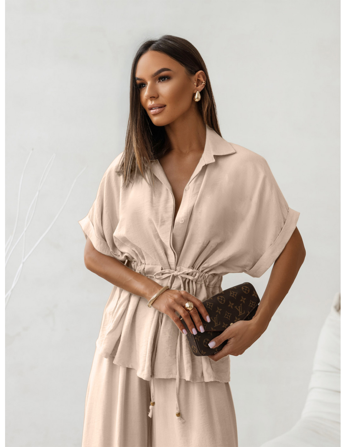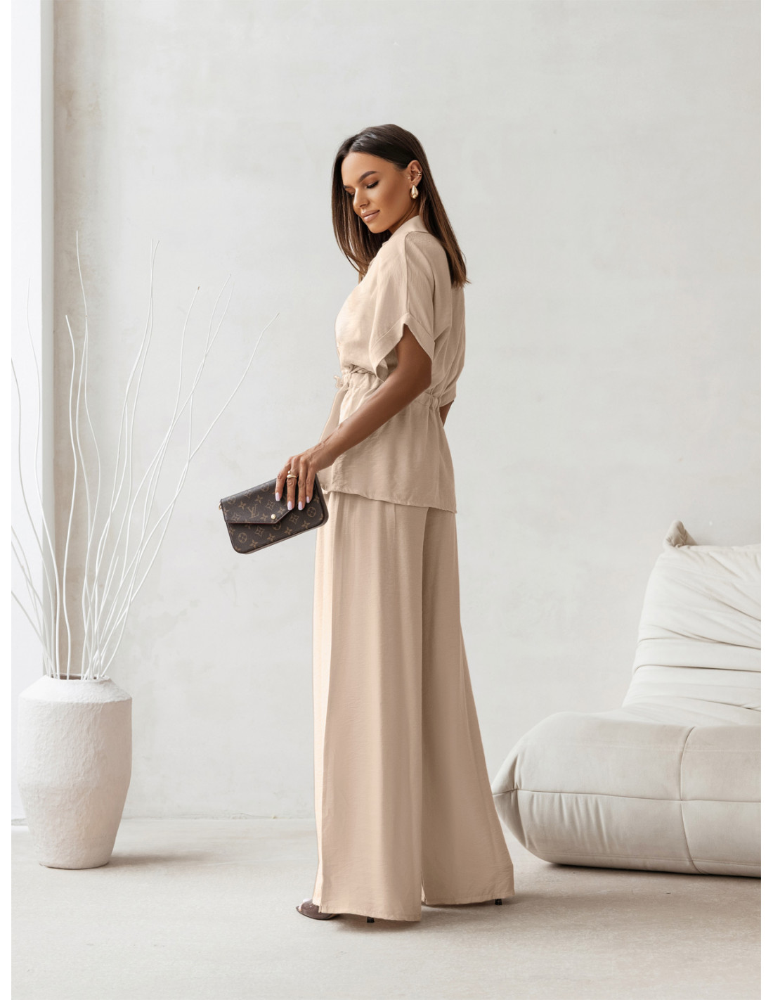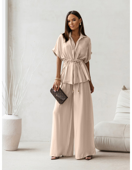 Stylowy komplet z szerokimi spodniami VELENA - beżowy