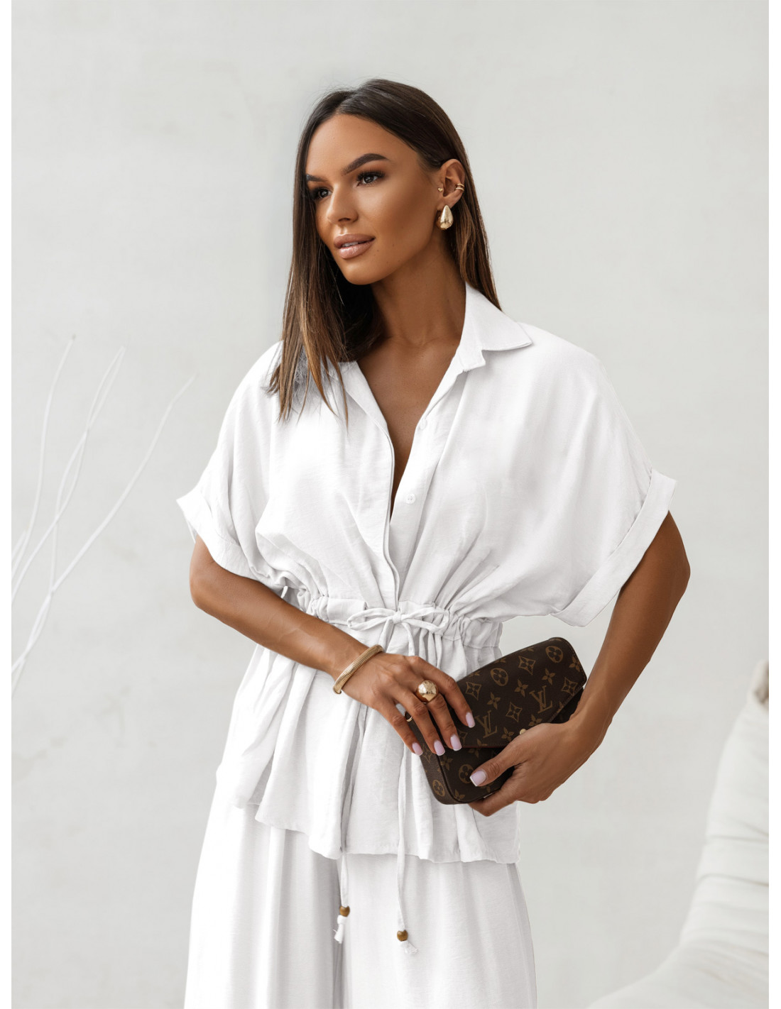 Klasyczny biały kolor tworzy idealną bazę do stylizacji – pasuje zarówno do złotych dodatków, jak i kontrastowych akcentów.
