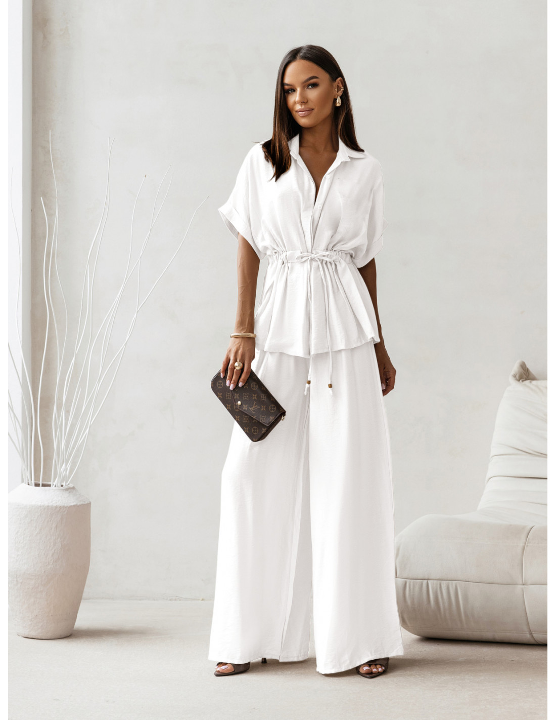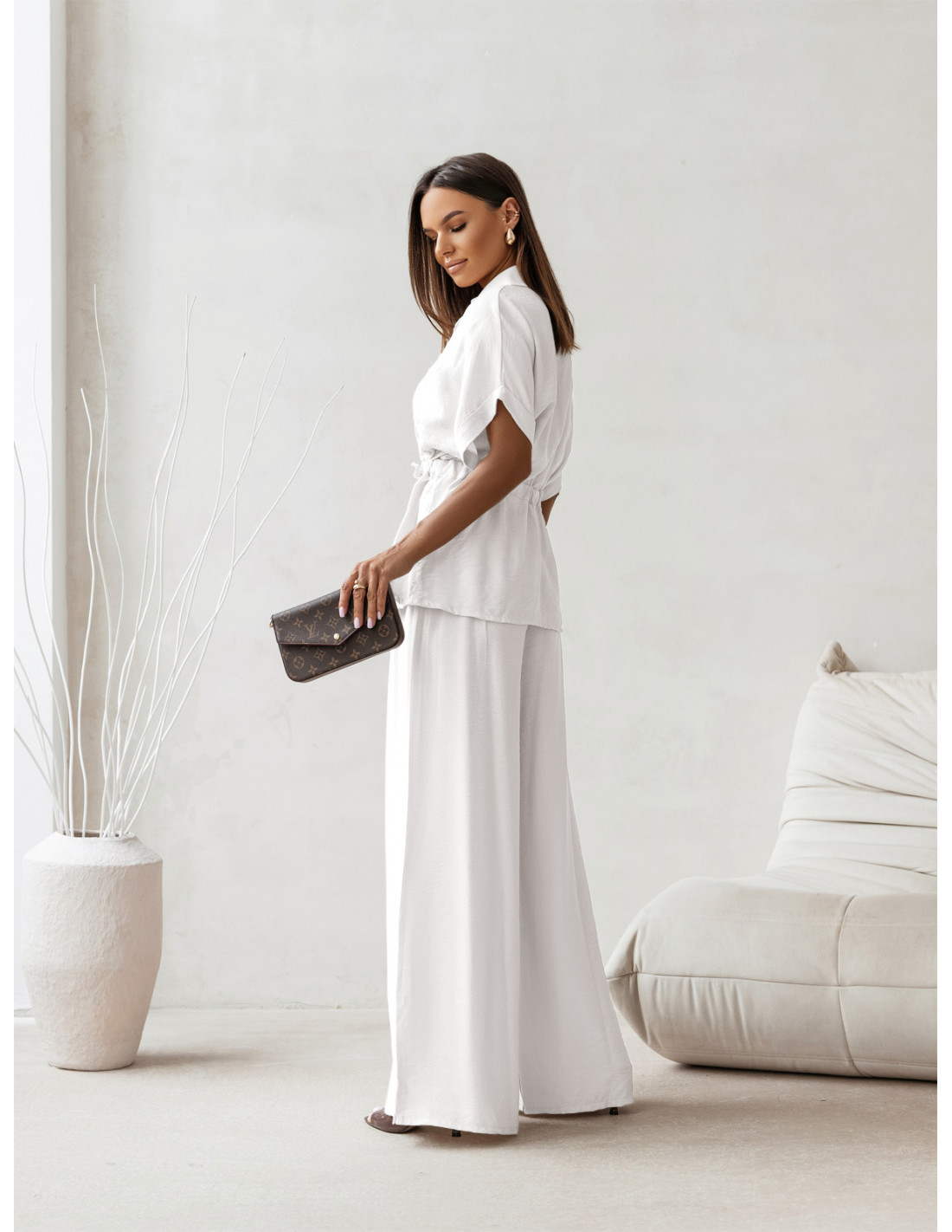 Stylowy komplet z szerokimi spodniami VELENA - biały