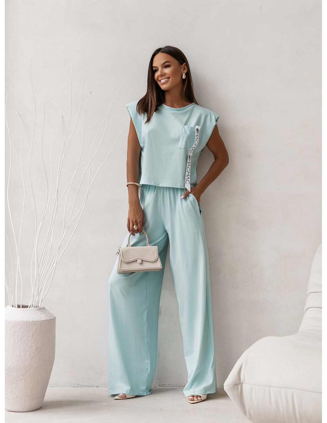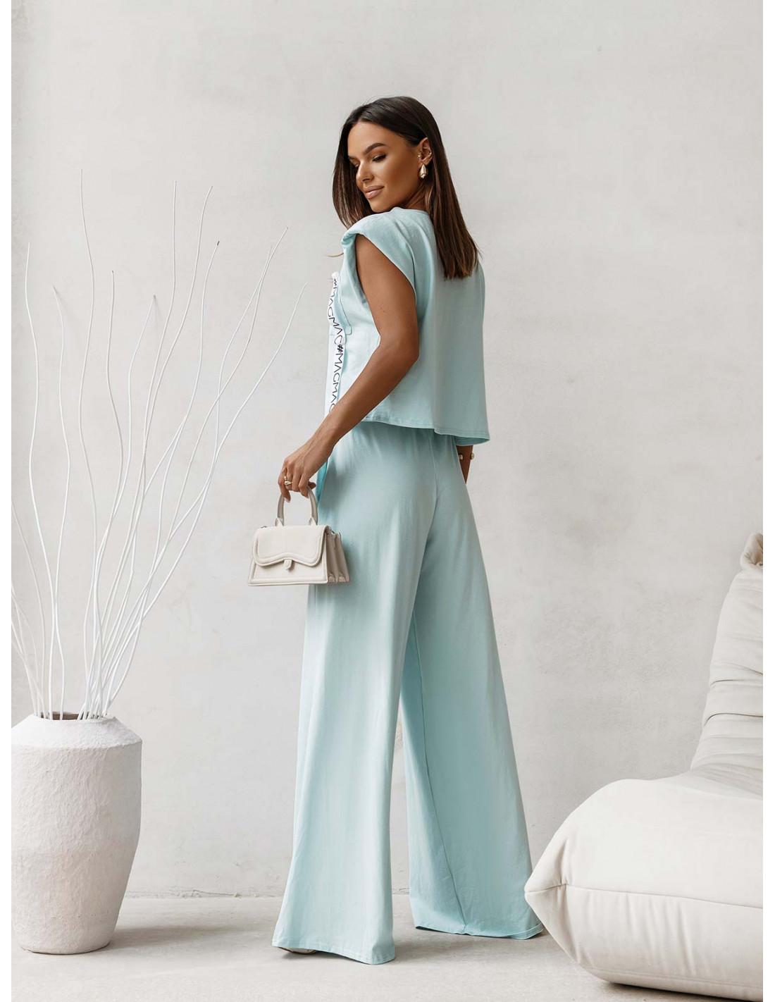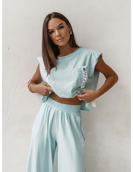 Bawełniany komplet top i szerokie spodnie ZAHIR - błękitny