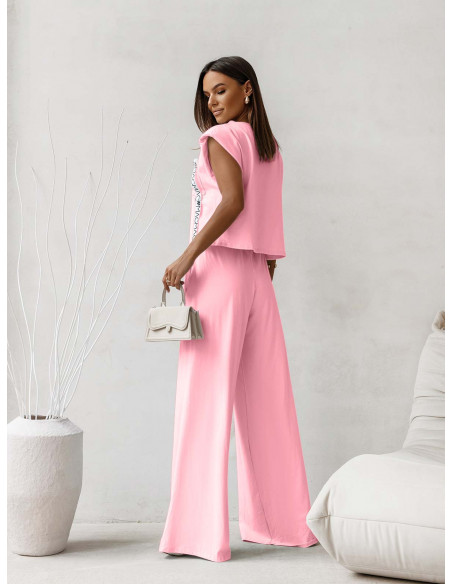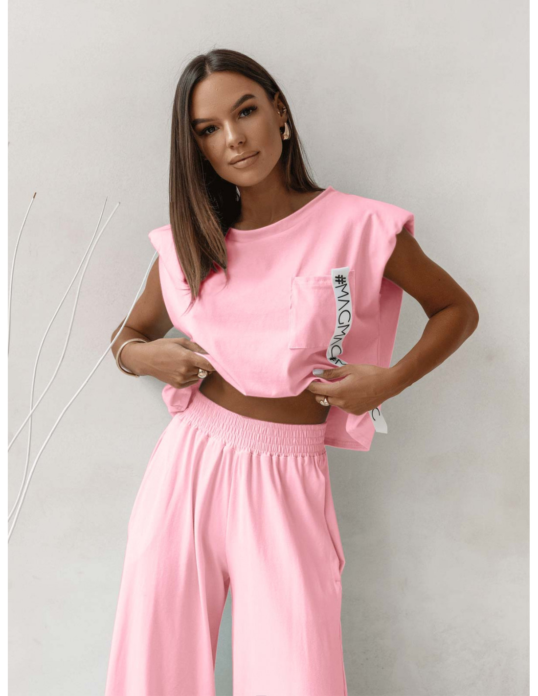Bawełniany komplet top i szerokie spodnie ZAHIR - pudrowy róż