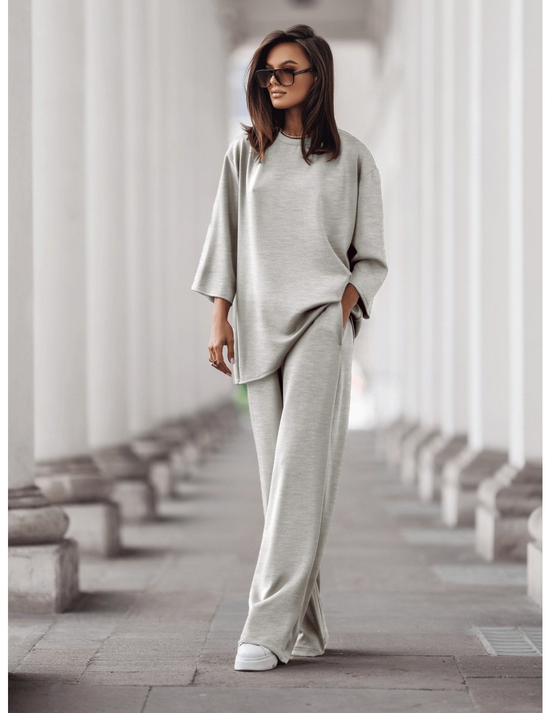 Stylowy komplet dresowy z tencelu MEGARA - szary melanż