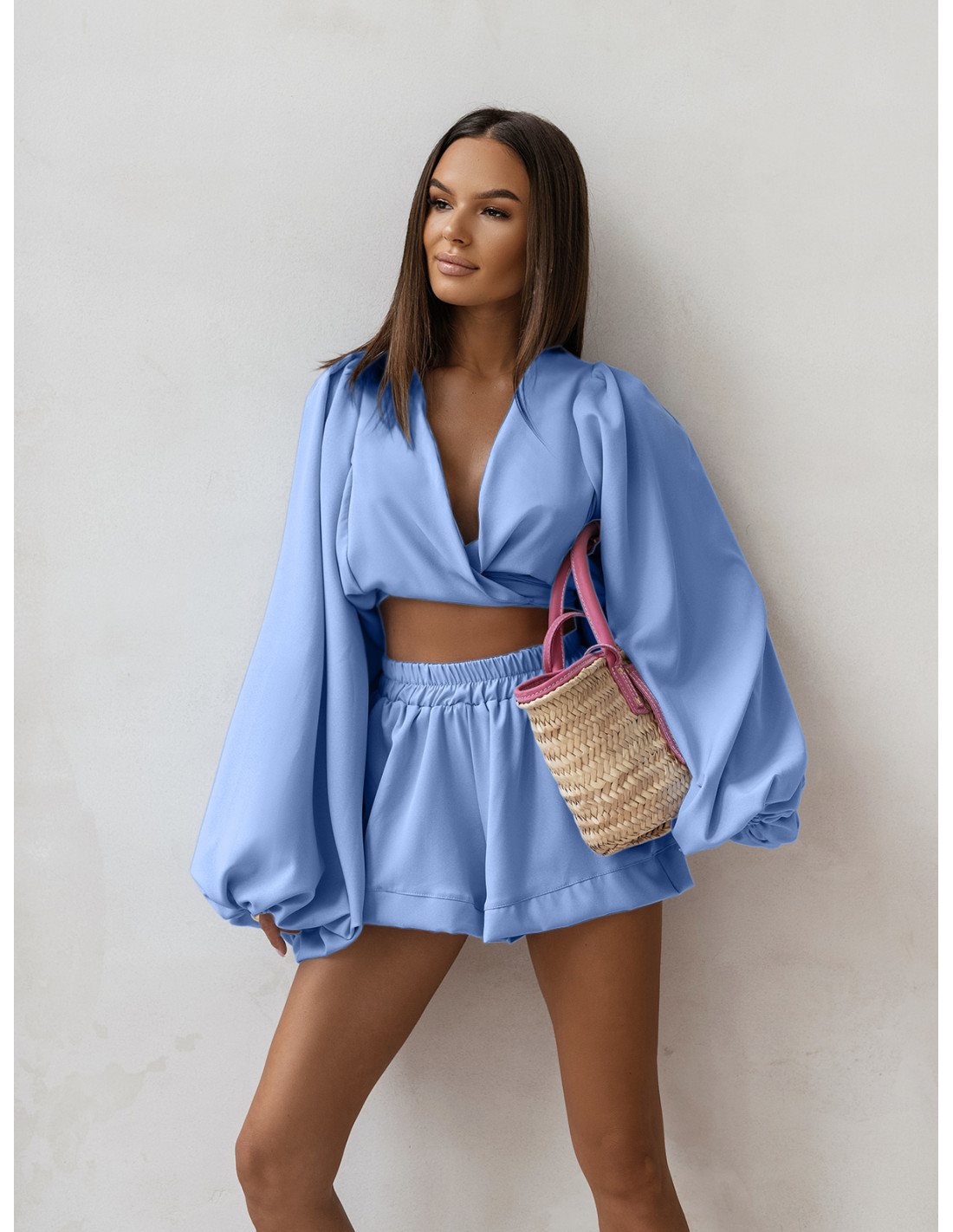 Komplet bluzka wiązana i spodenki MOELI - błękitny