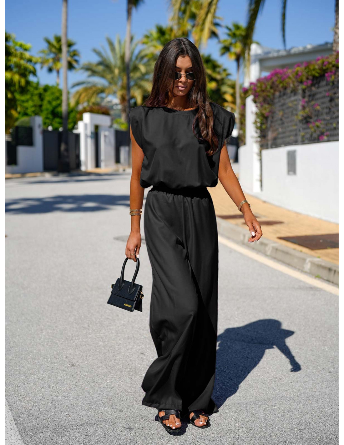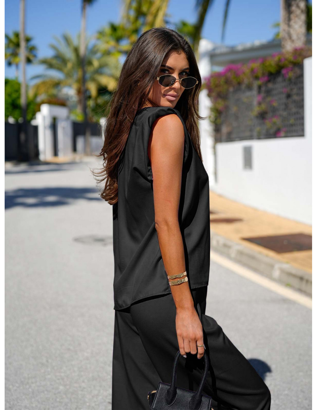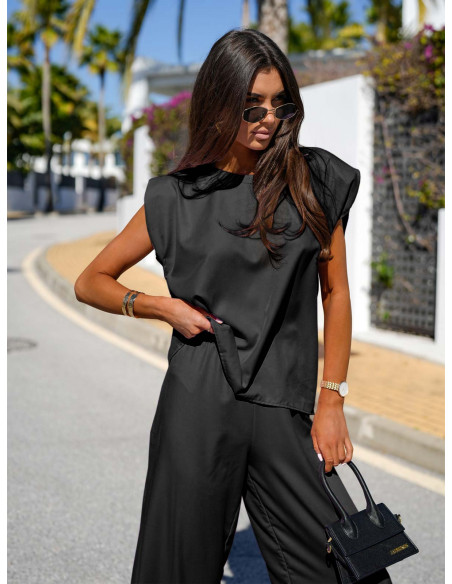 Stylowy komplet bluzka i szerokie spodnie PALMERA - czarny