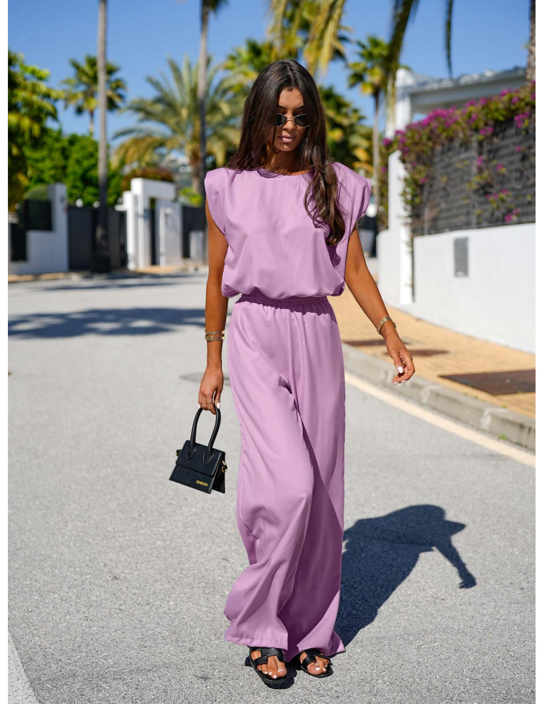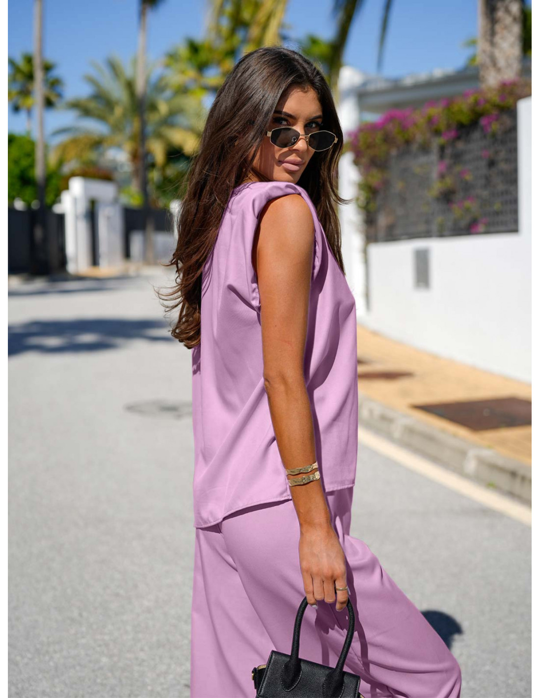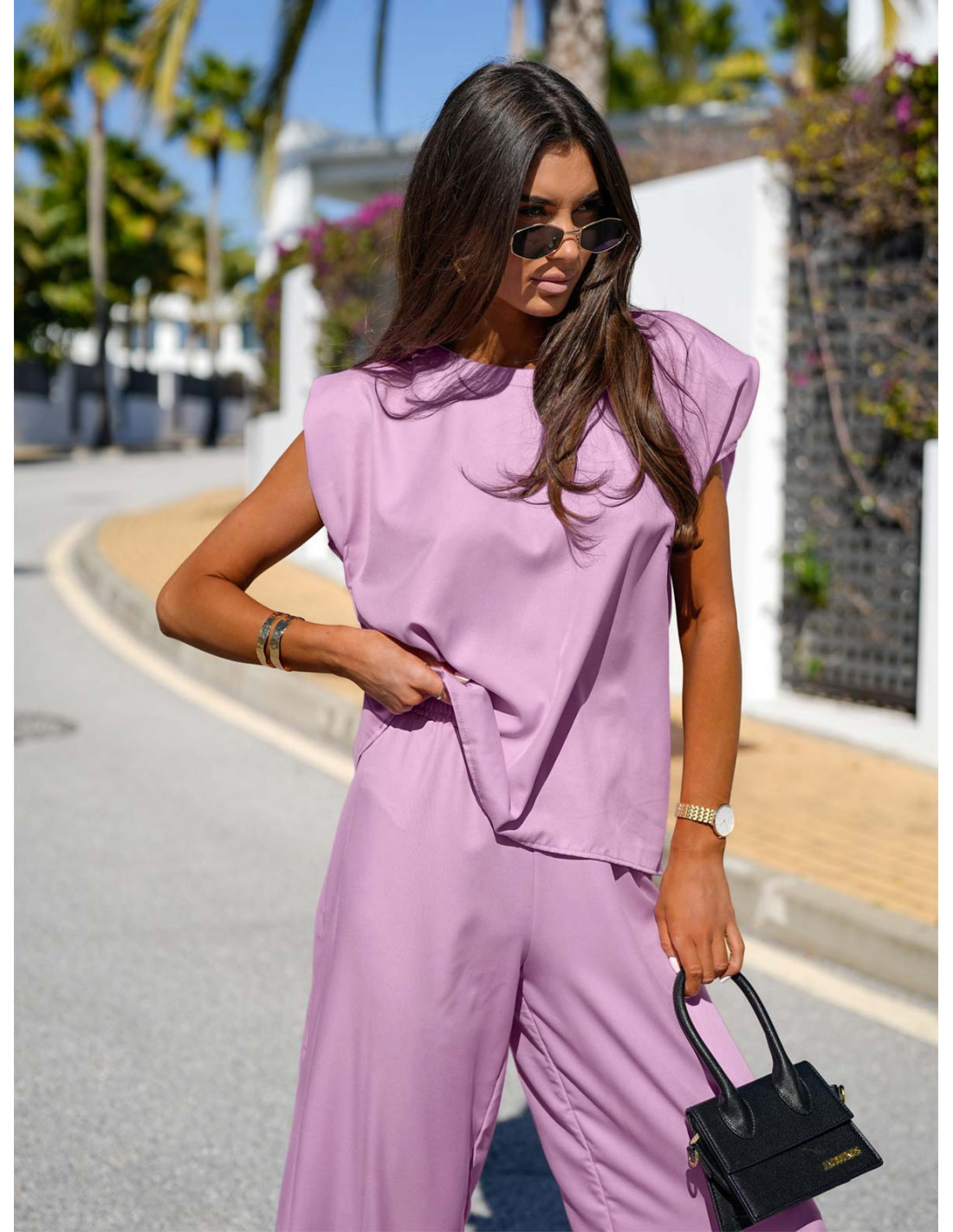 Stylowy komplet bluzka i szerokie spodnie PALMERA - liliowy