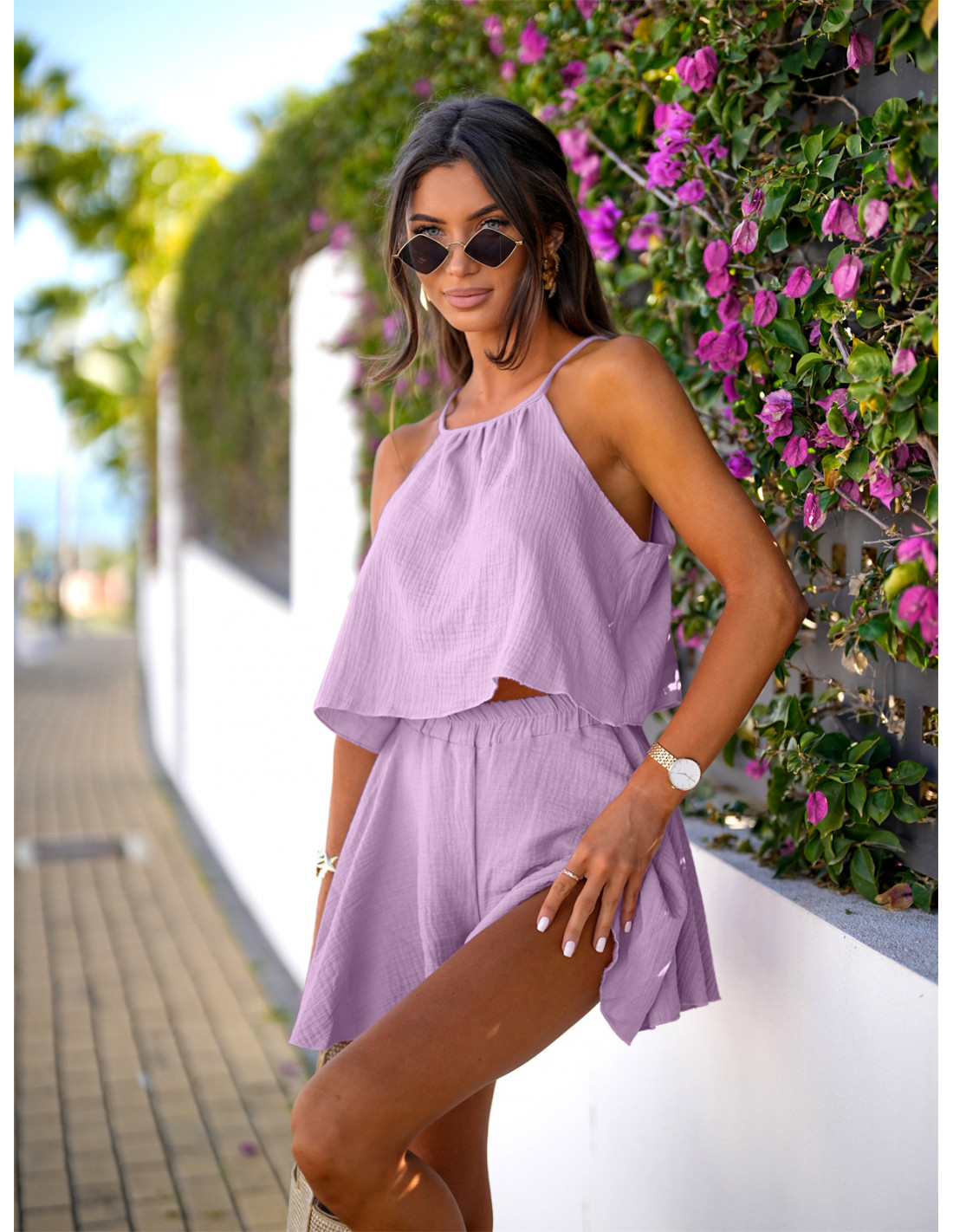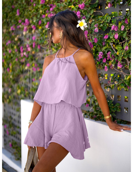 Muślinowy komplet top i spódnico-spodenki SANDY - liliowy