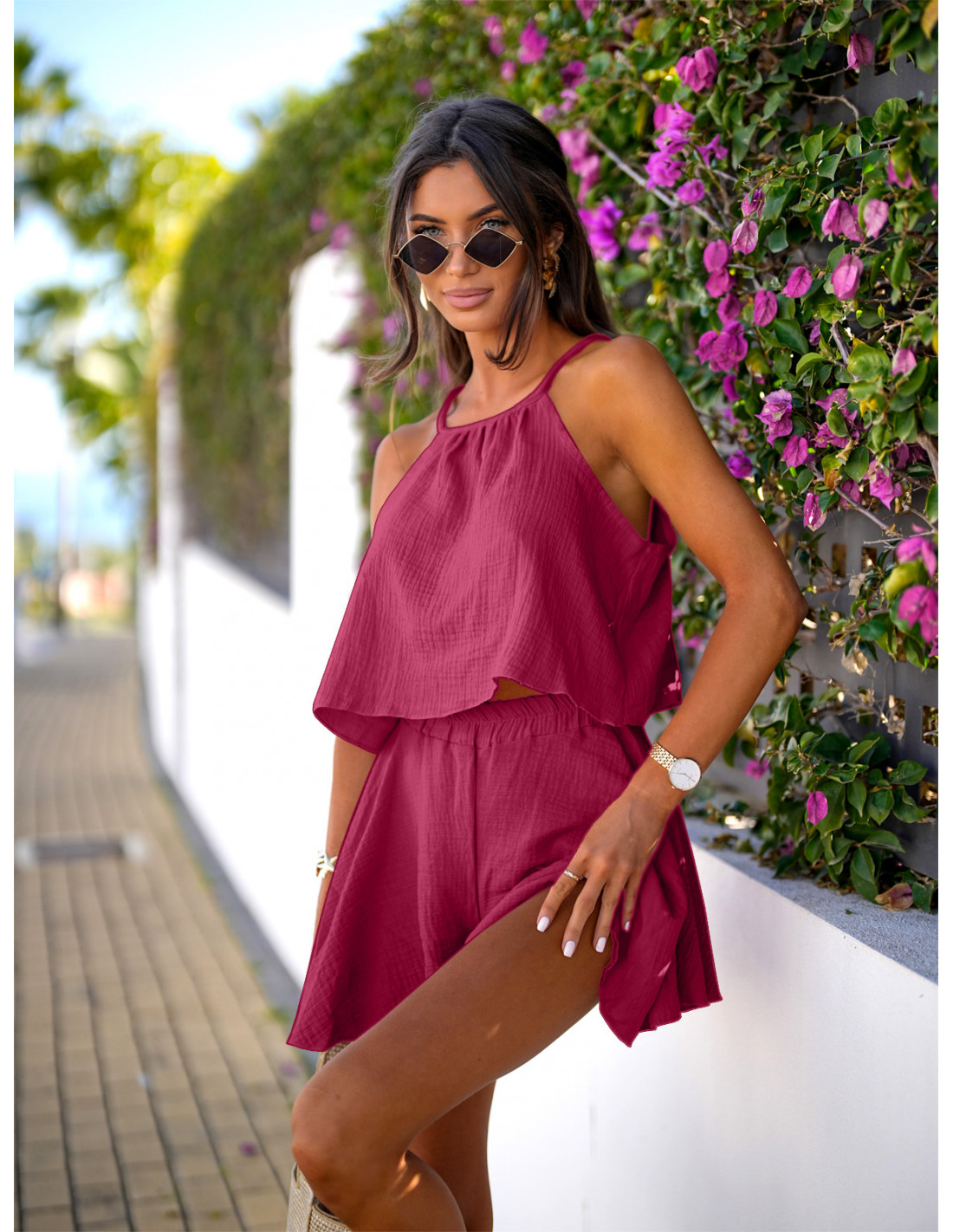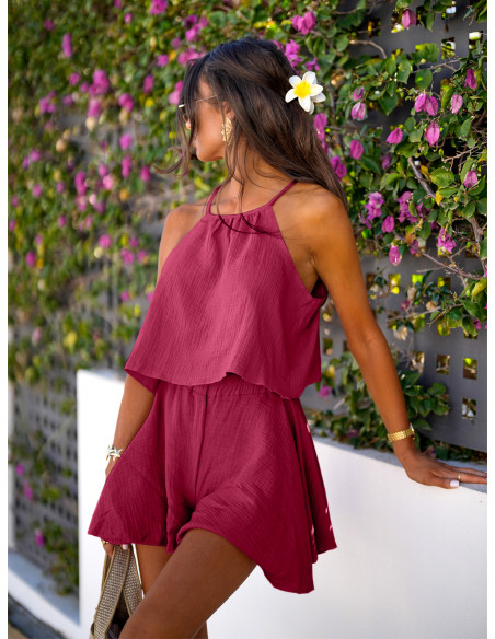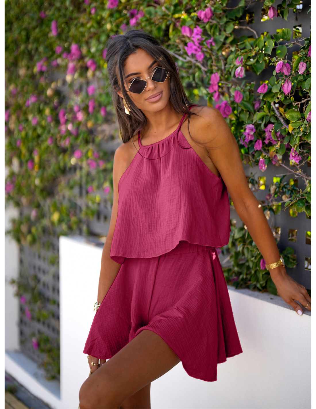 Muślinowy komplet top i spódnico-spodenki SANDY - fuksjowy