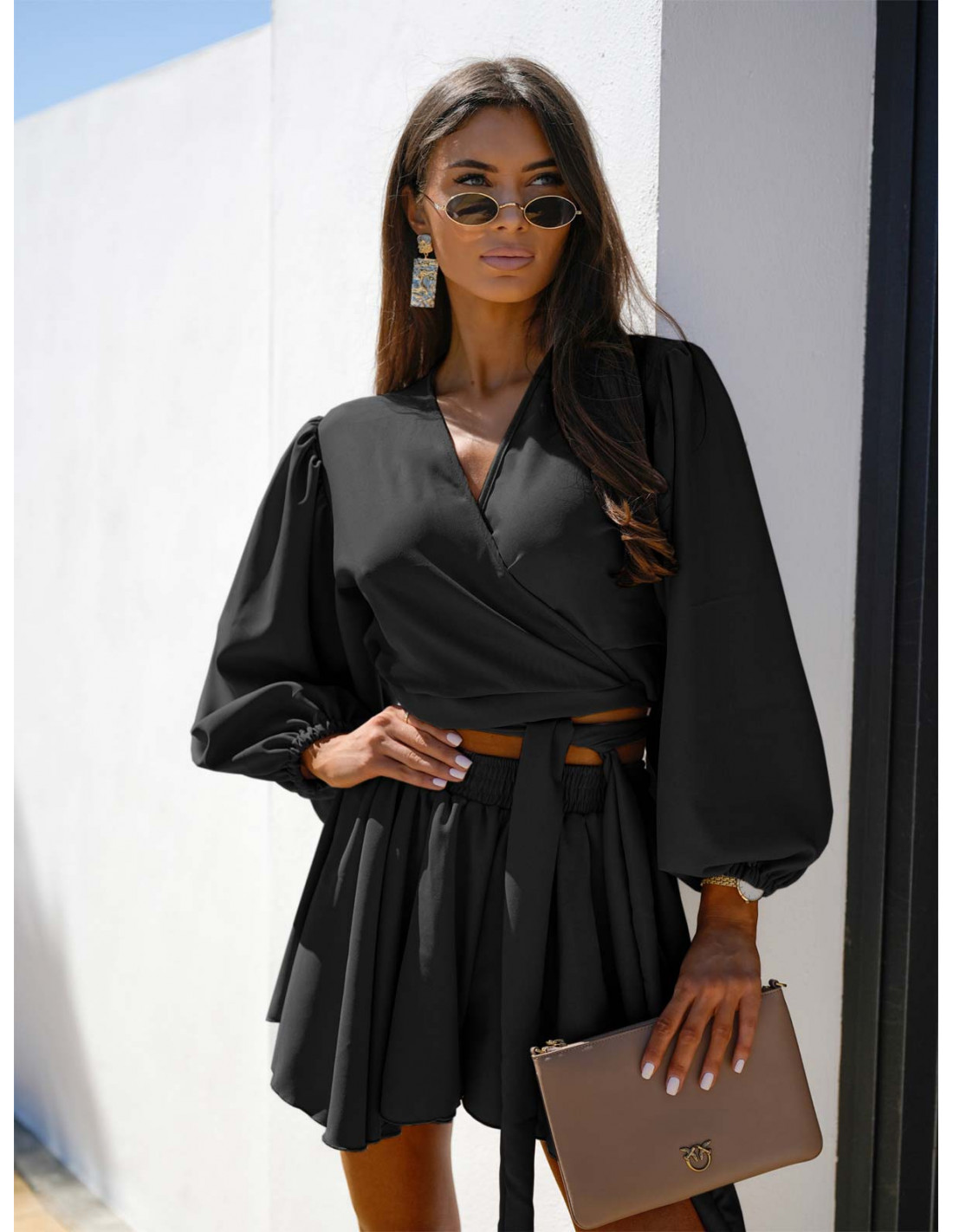 Komplet bluzka i spódnico-spodenki LETIA - czarny