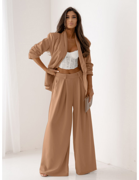 Modny garnitur z szerokimi spodniami TOKYO - cappuccino
