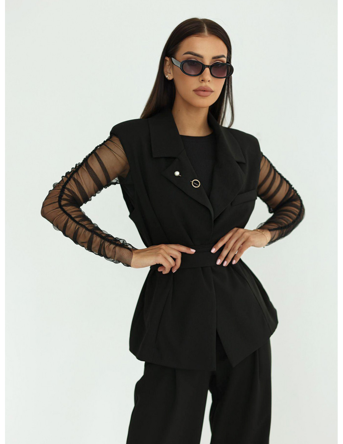 Stylowy komplet kamizelka i spodnie FAITH - czarny