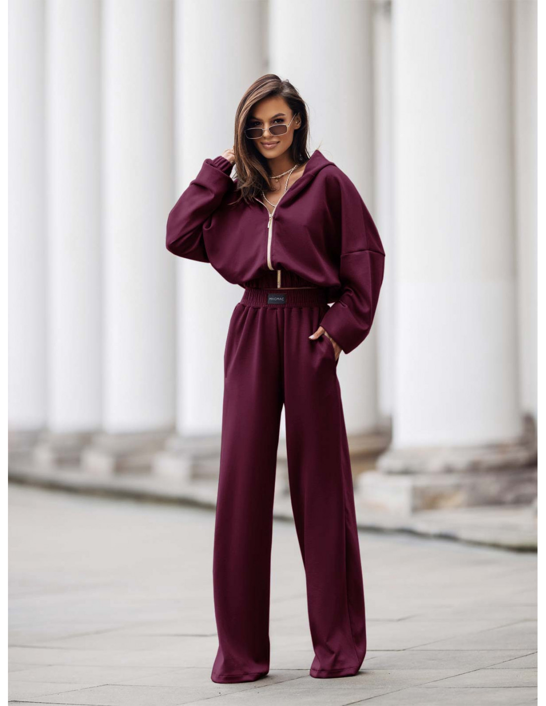 Stylowy komplet dresowy z tencelu MIKKA - bordowy