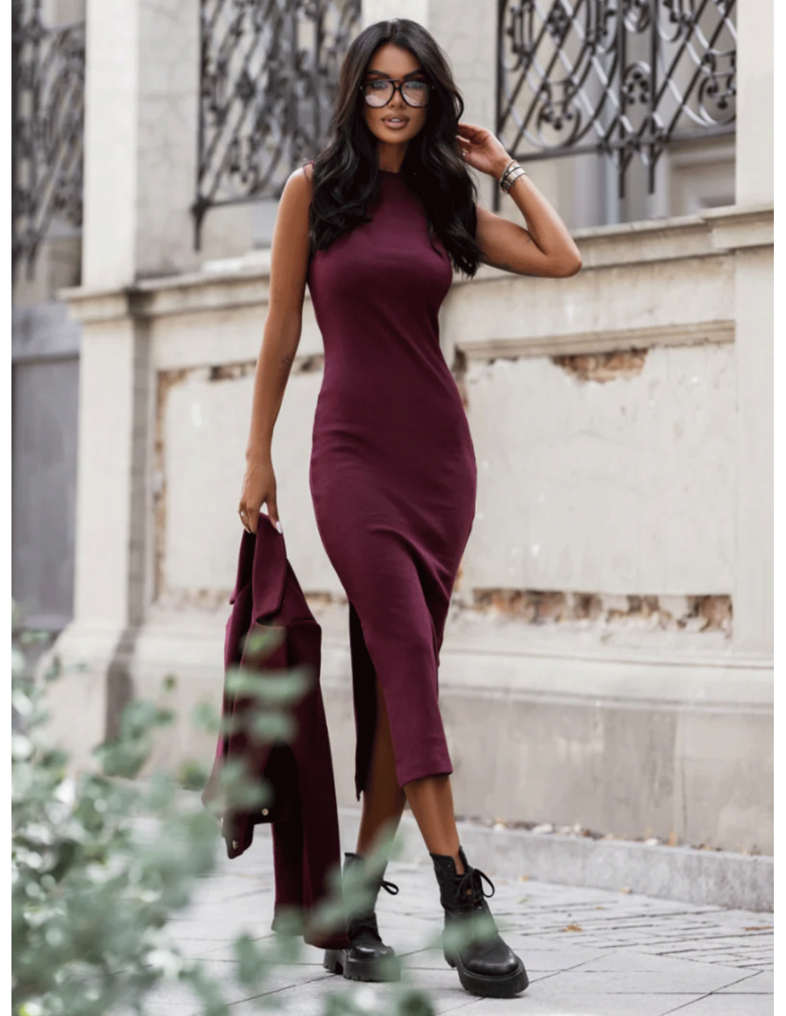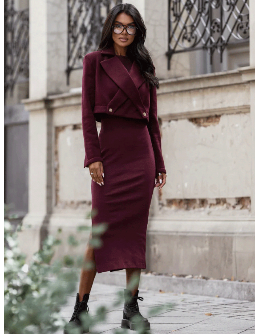 Stylowy komplet marynarka i sukienka REBEL - bordowy