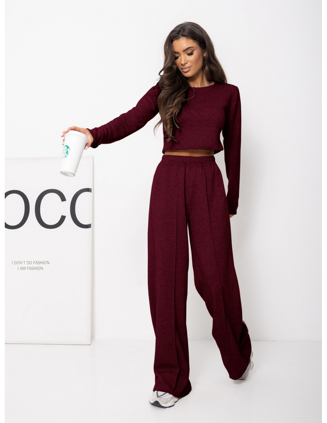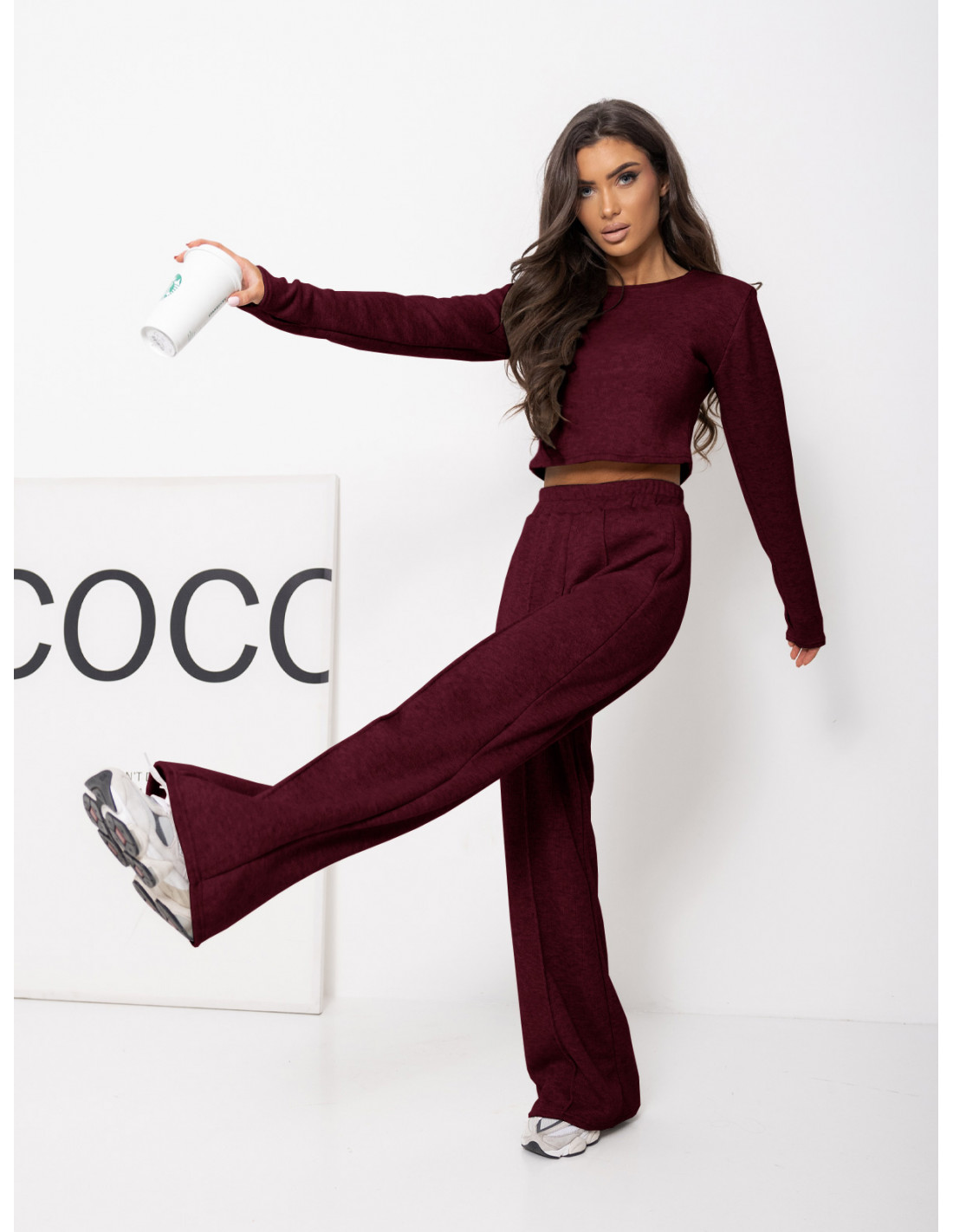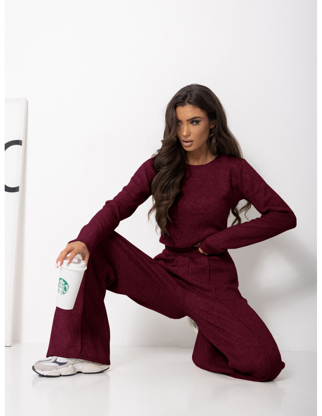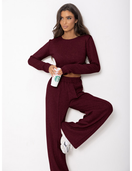 Komplet dzianinowy z szerokimi spodniami DANEB - bordowy