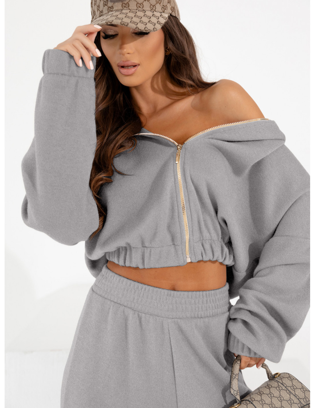 Komplet dzianinowy bluza i spodnie NOLANI - szary