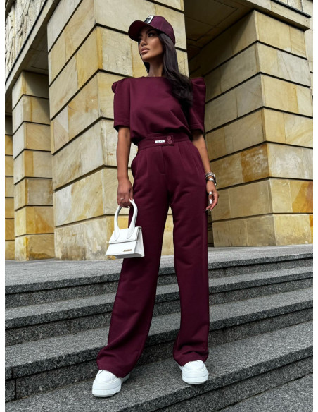 Bawełniany komplet bluzka ze spodniami XANDRA - bordowy