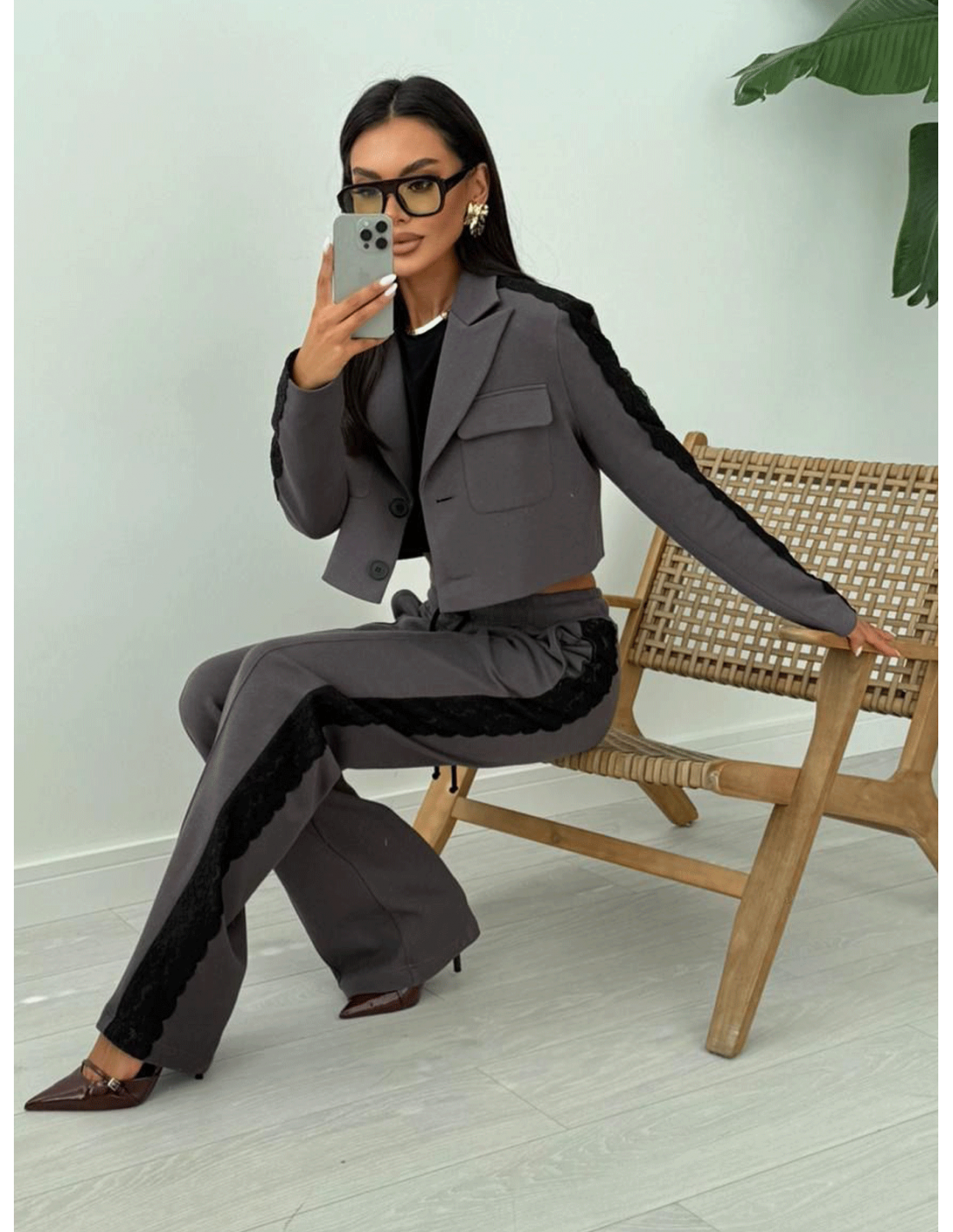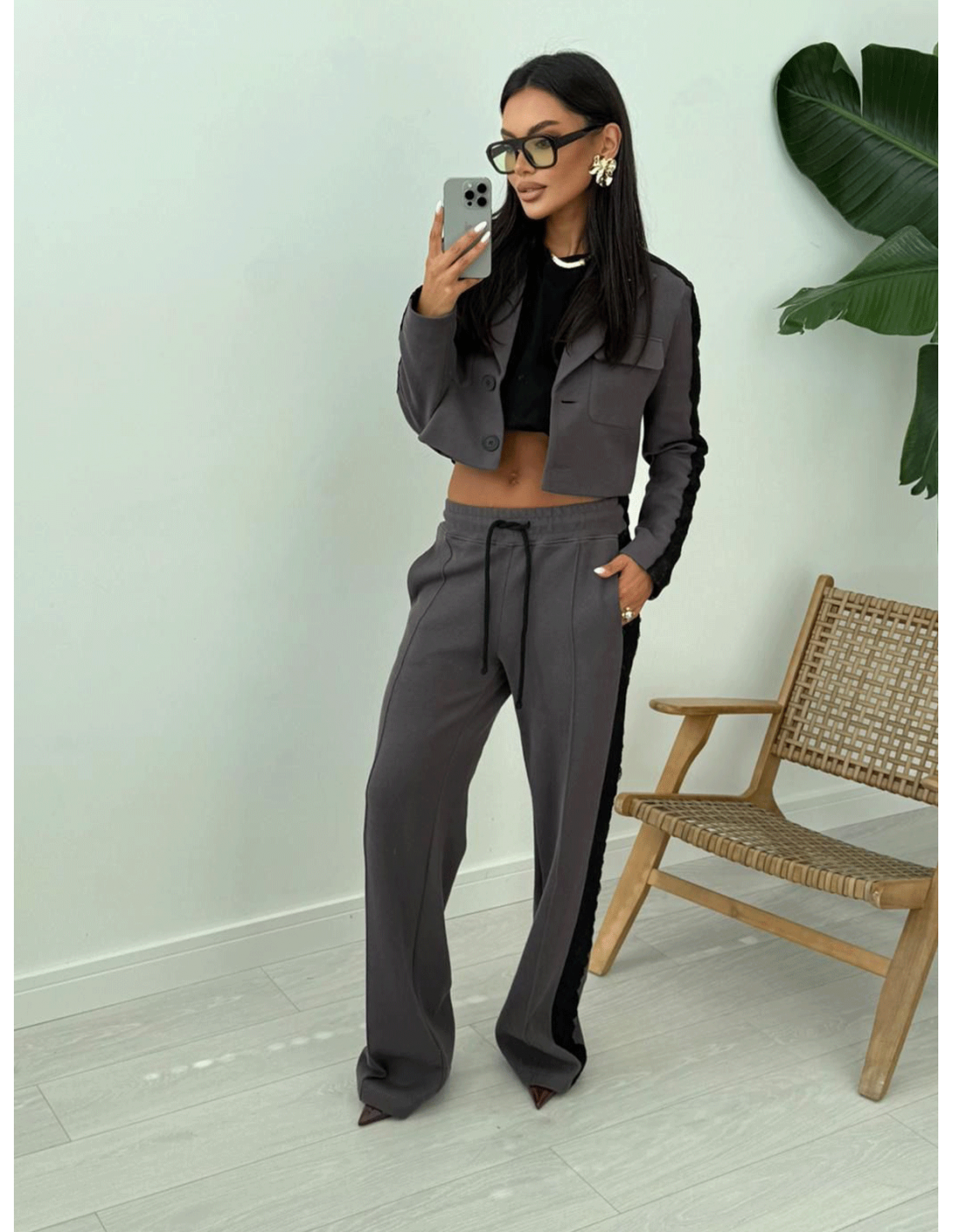 Stylowy komplet w kolorze grafitowym to elegancja i wygoda w jednym.