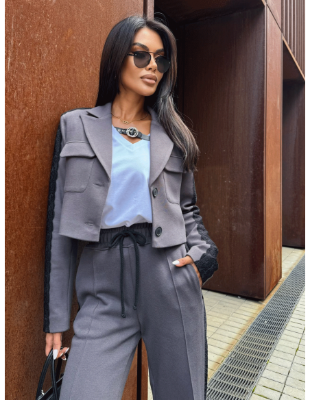 Stylowy komplet z koronkową wstawką SAYLOR - grafitowy