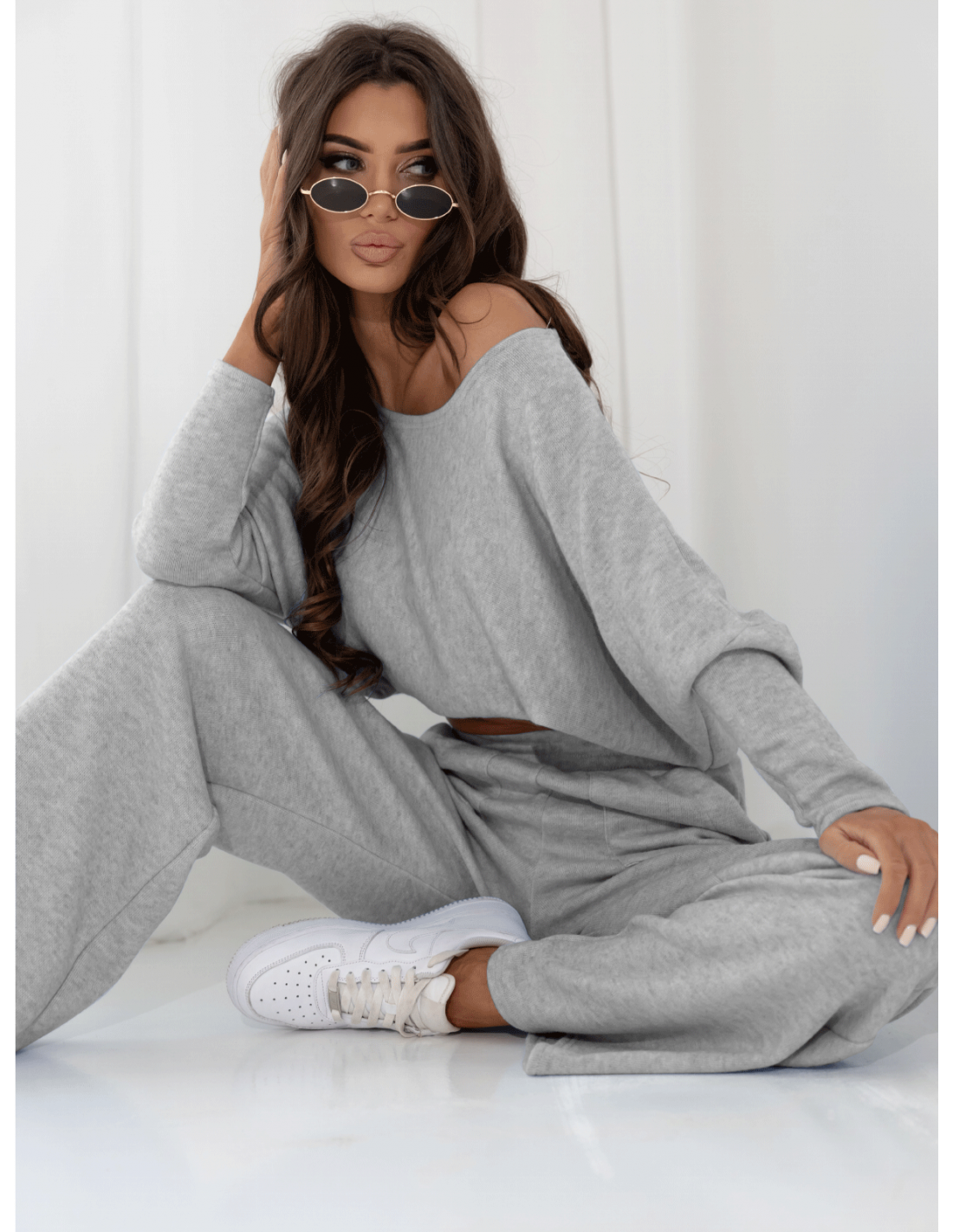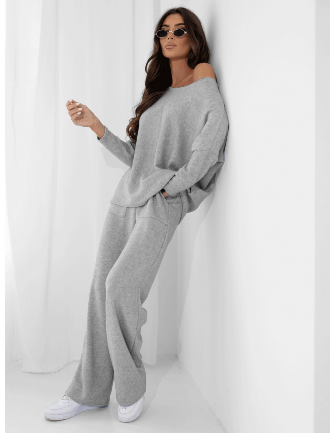 Komplet dzianinowy z szerokimi spodniami ELSINORE- szary