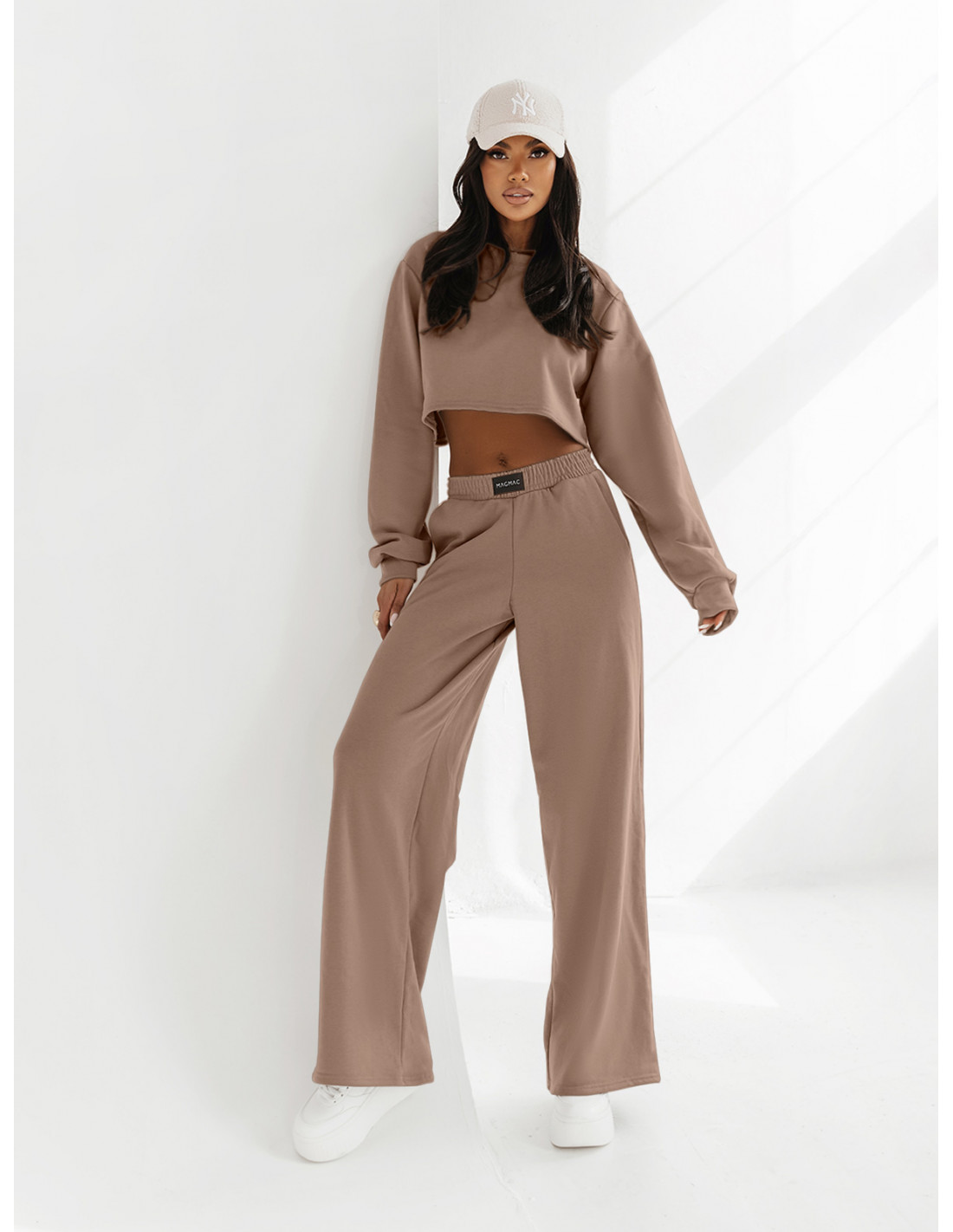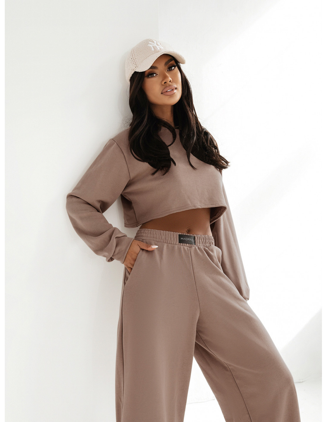 Komplet dresowy krótka bluza i spodnie SAYTON - mocha mousse