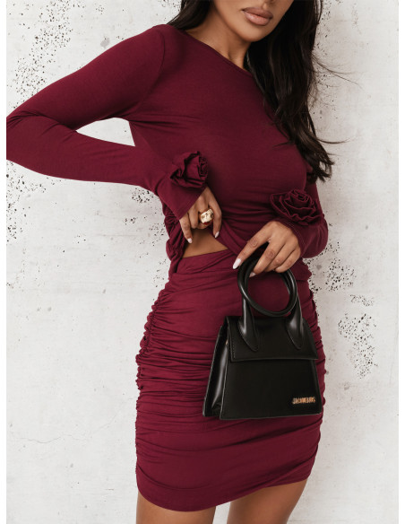 Komplet z wiskozy bluzka i spódnica SHAZA - bordowy