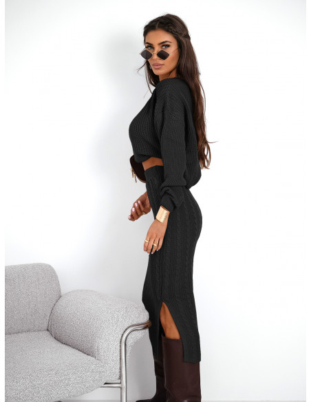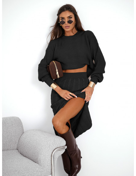 Komplet dzianinowy ze spódnicą XANTI - czarny
