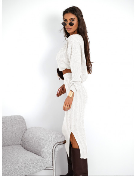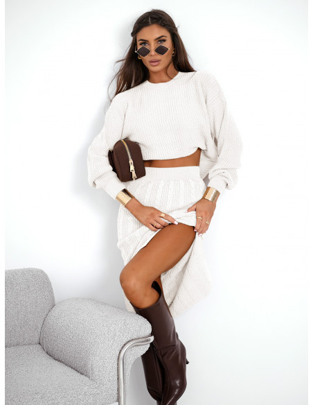 Komplet dzianinowy ze spódnicą XANTI - biały