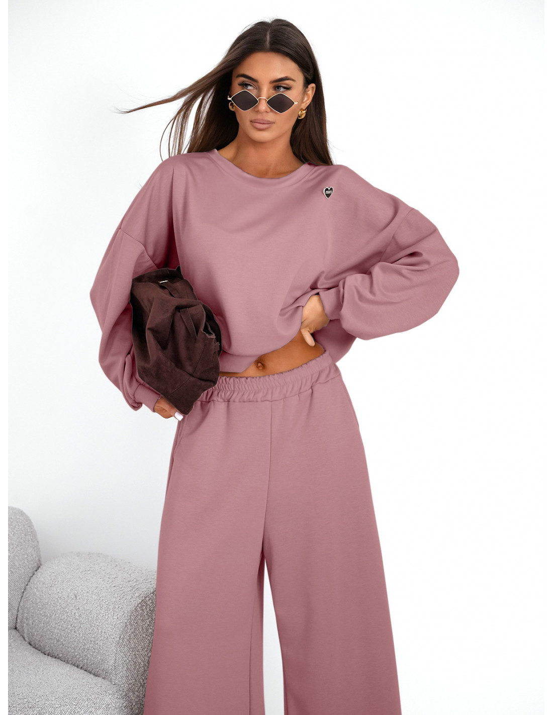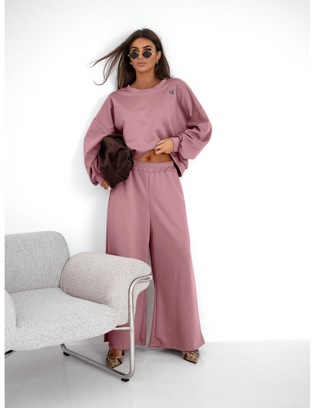 Komplet w kolorze brudnego różu łączy minimalistyczną elegancję z codzienną funkcjonalnością – idealny dla kobiet, które cenią styl i wygodę w jednym.