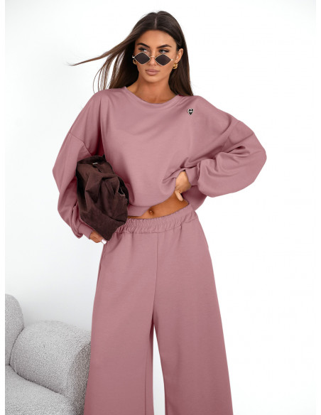 Komplet z wiskozy z szerokimi spodniami LETTY - brudny róż