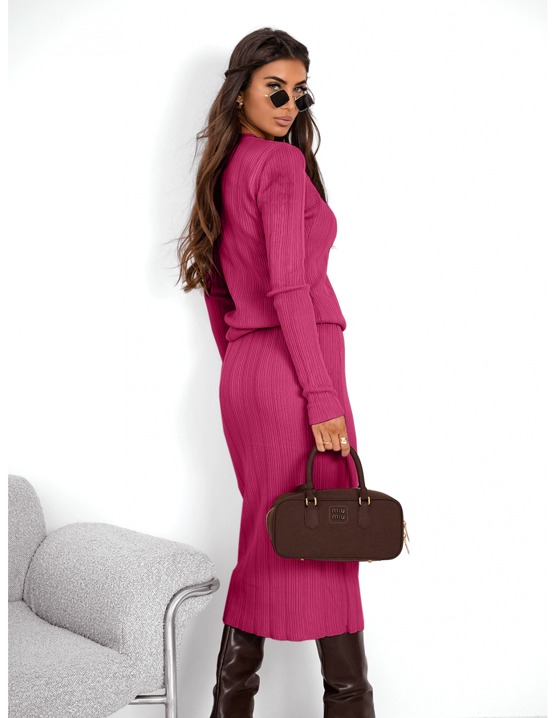 Stylowy komplet z midi spódnicą DATIVA - fuksjowy